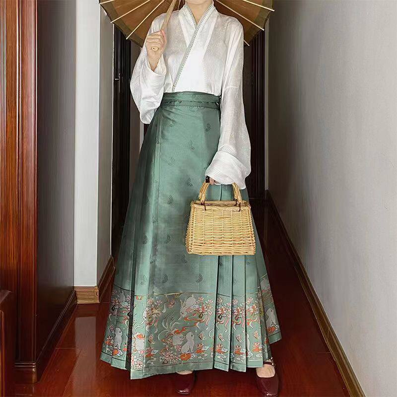 [Кролик Zai] Сюй Джиао та же самая юбка с однократной перфорированной перфорированной перфорированной складной юбкой с лапшой лошади Hanfu