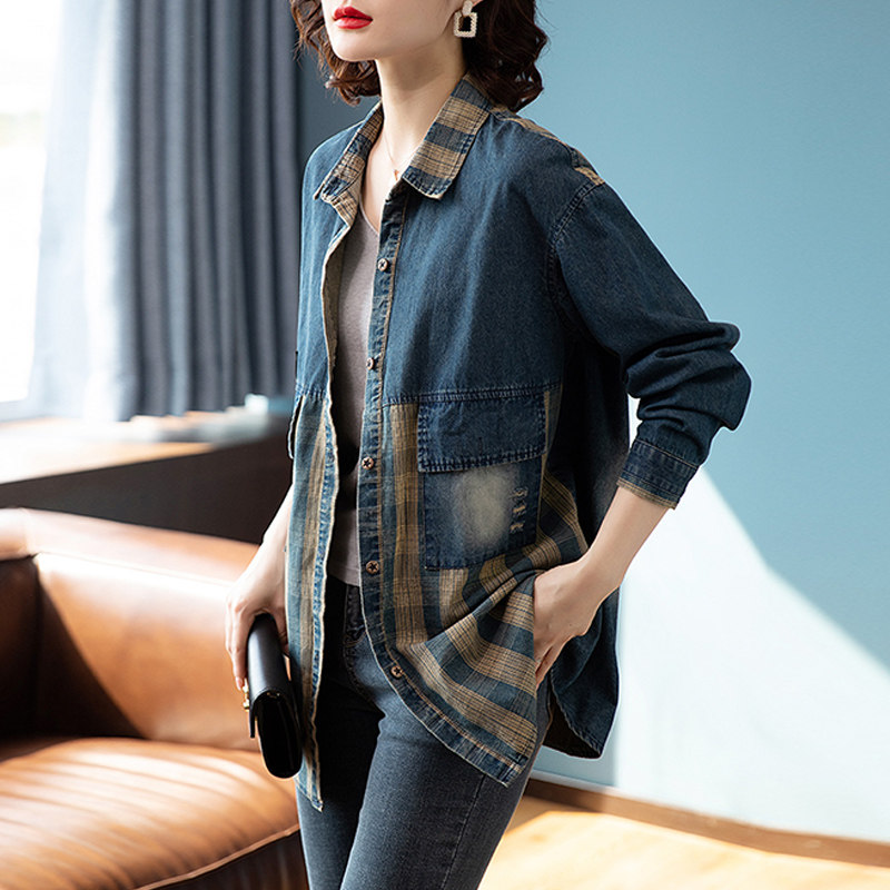 Джинсовая весенняя рубашка, модная демисезонная куртка, коллекция 2023, городской стиль, большой размер