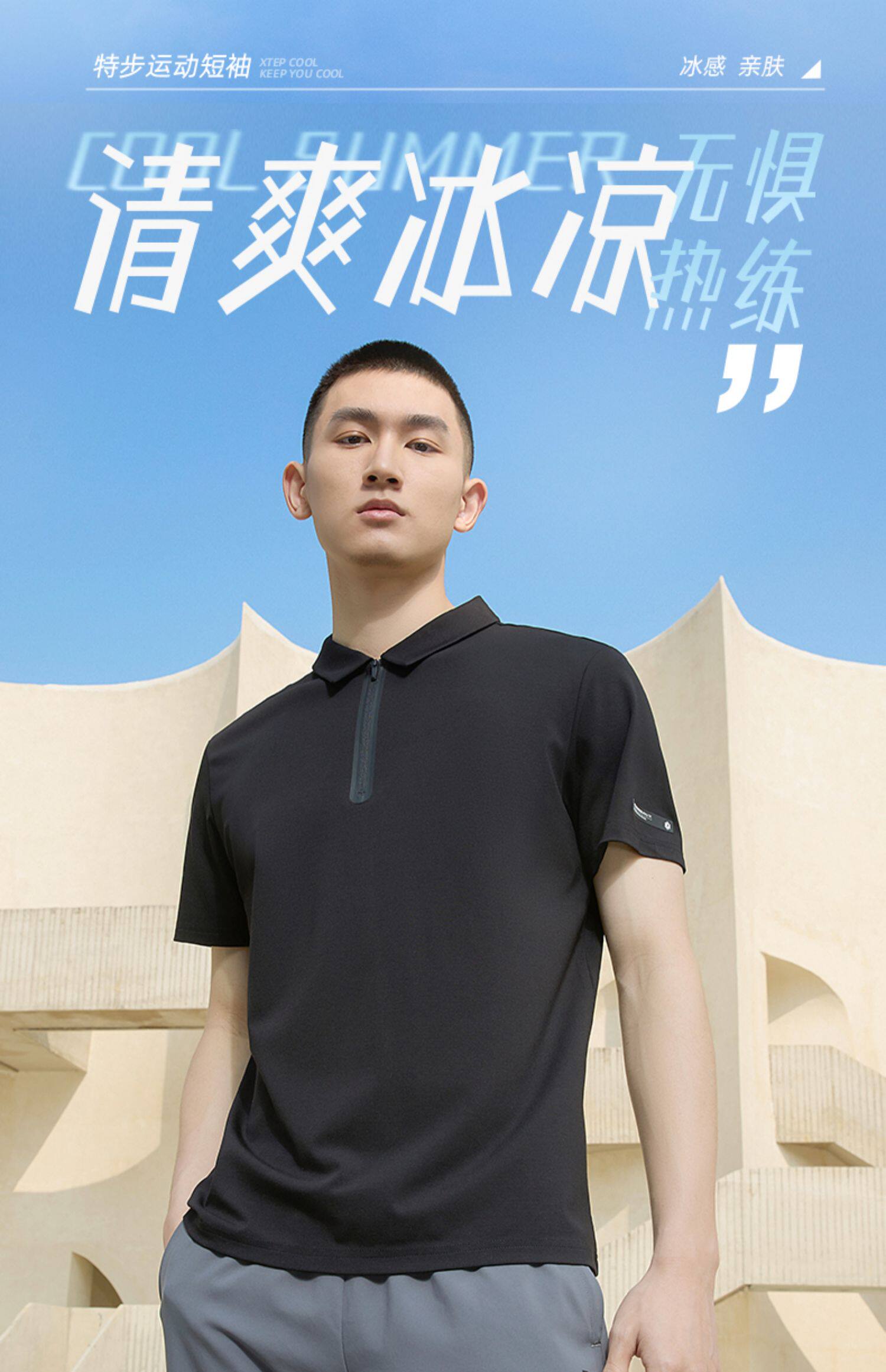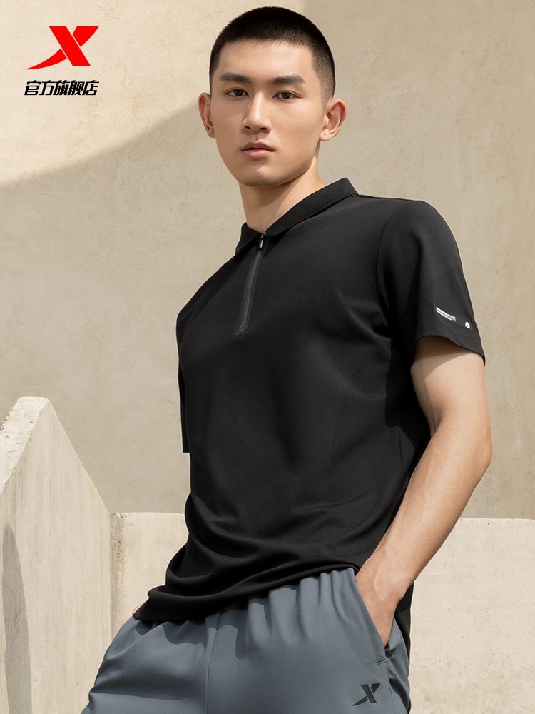 Xtep, шелковая быстросохнущая дышащая спортивная летняя футболка polo, короткий рукав