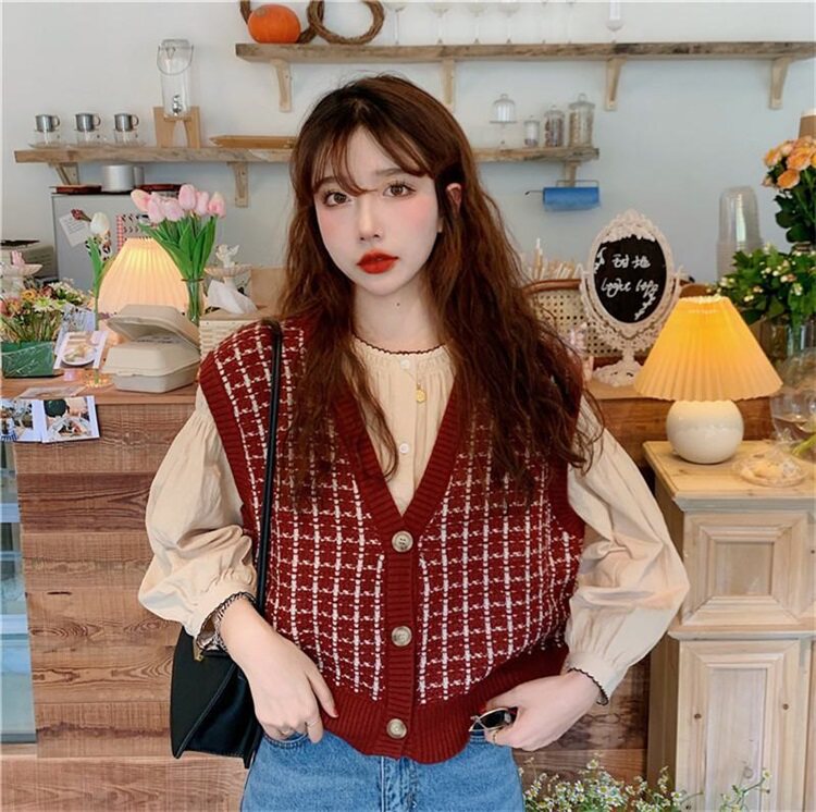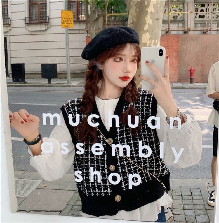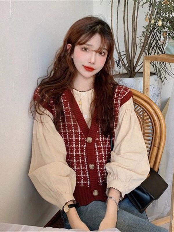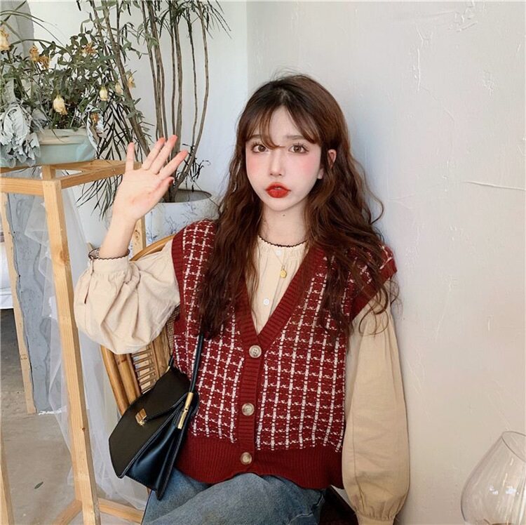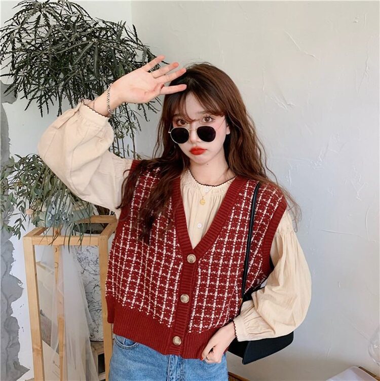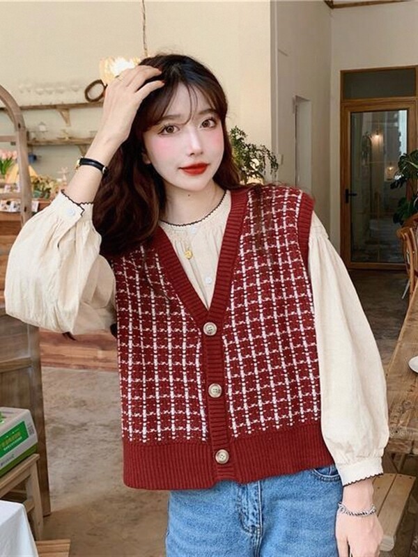 Трикотажный осенний свитер, жилет, майка топ, кардиган, в корейском стиле, оверсайз