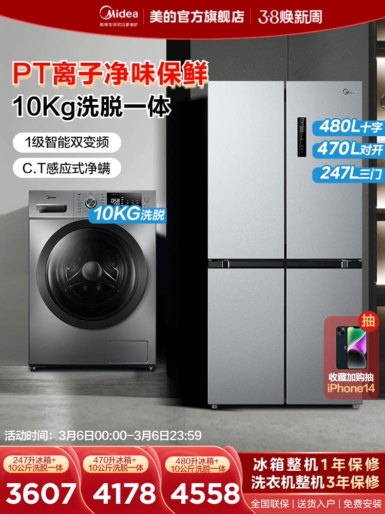 [Ледовочная набор] Midea Holrigrator Pargerator Package Package Package Advotion Полностью автоматический роликовый перекрестный перекрестный перекрестный перекрестный перекресток четырех