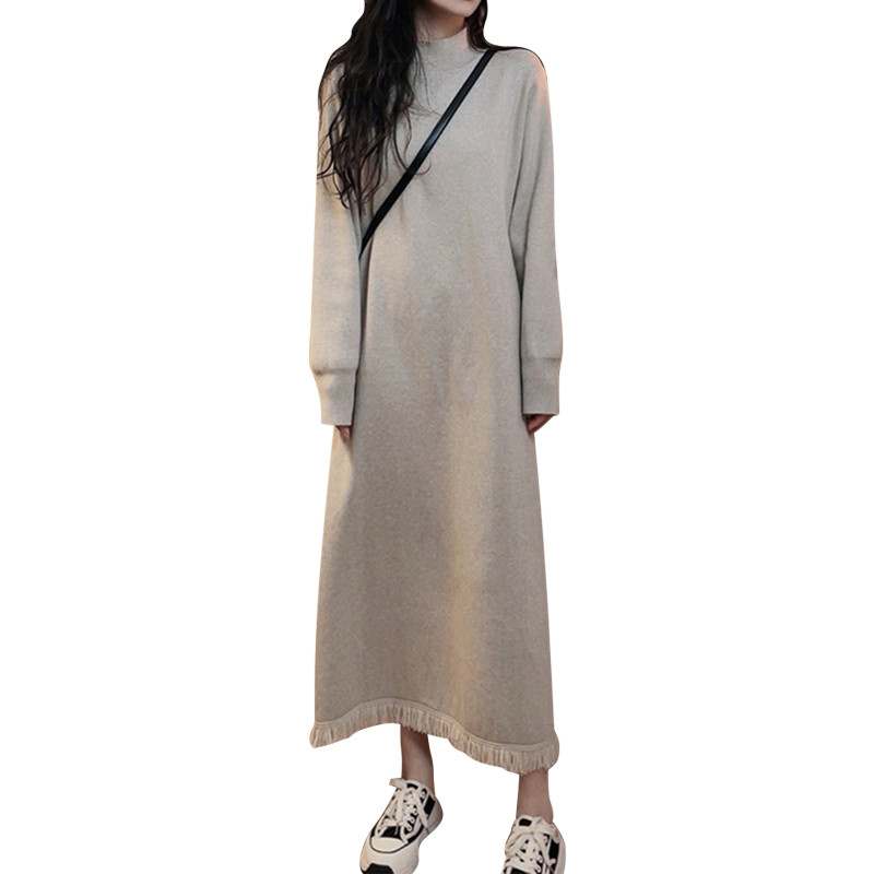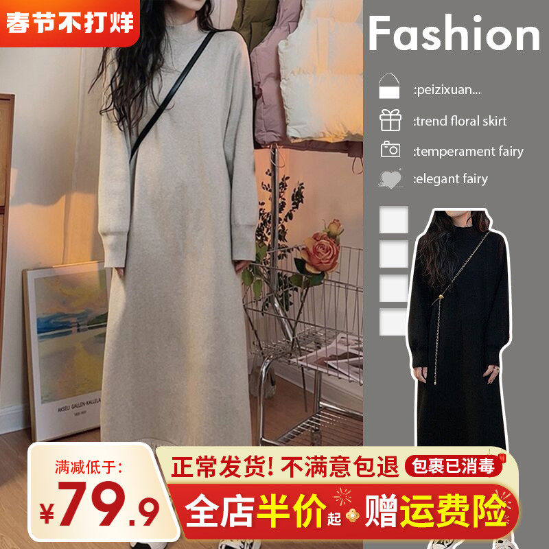 Базовый трикотажный демисезонный свитер, платье, длинная юбка, высокий воротник, коллекция 2023, французский стиль, подходит для подростков