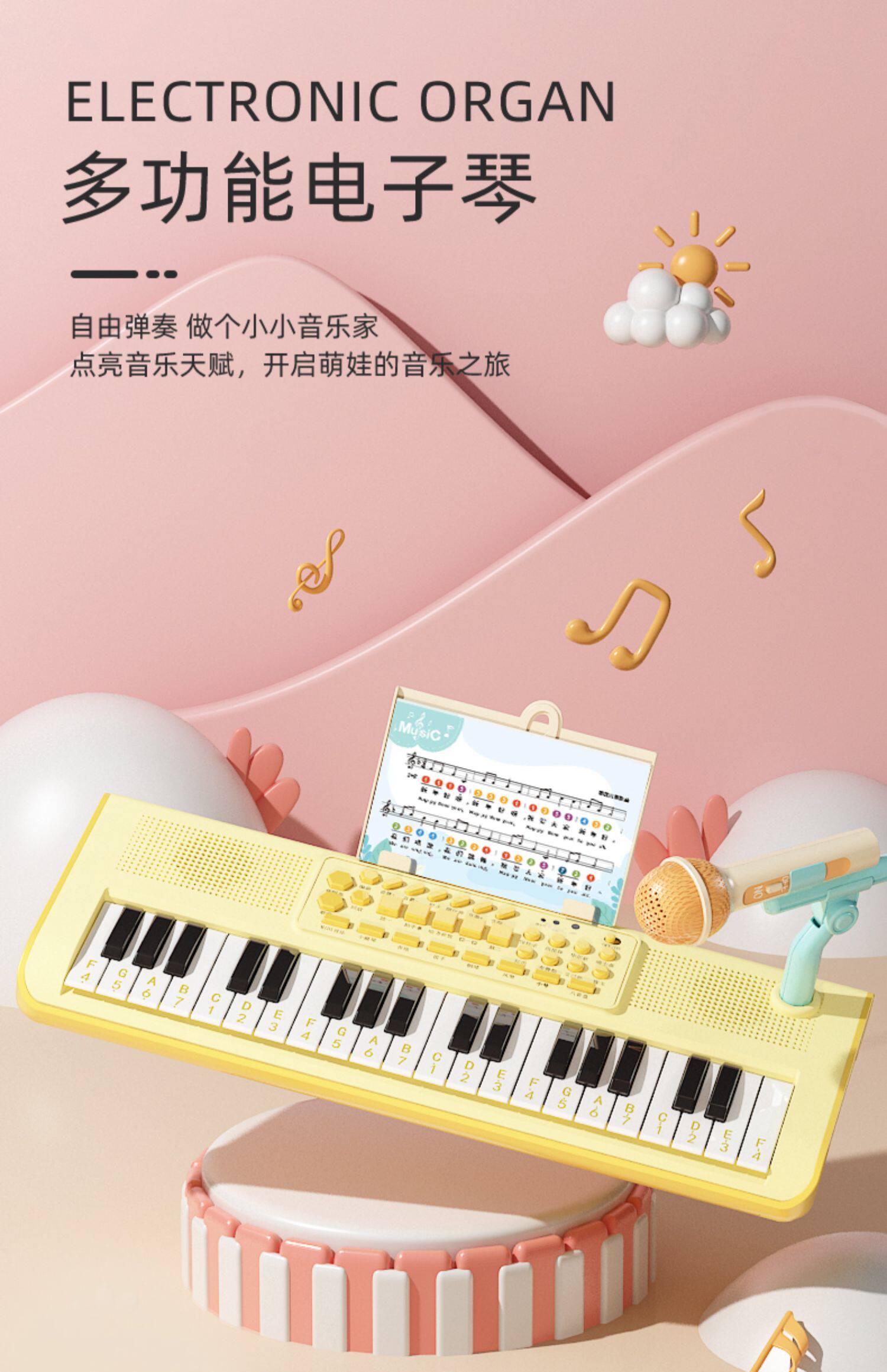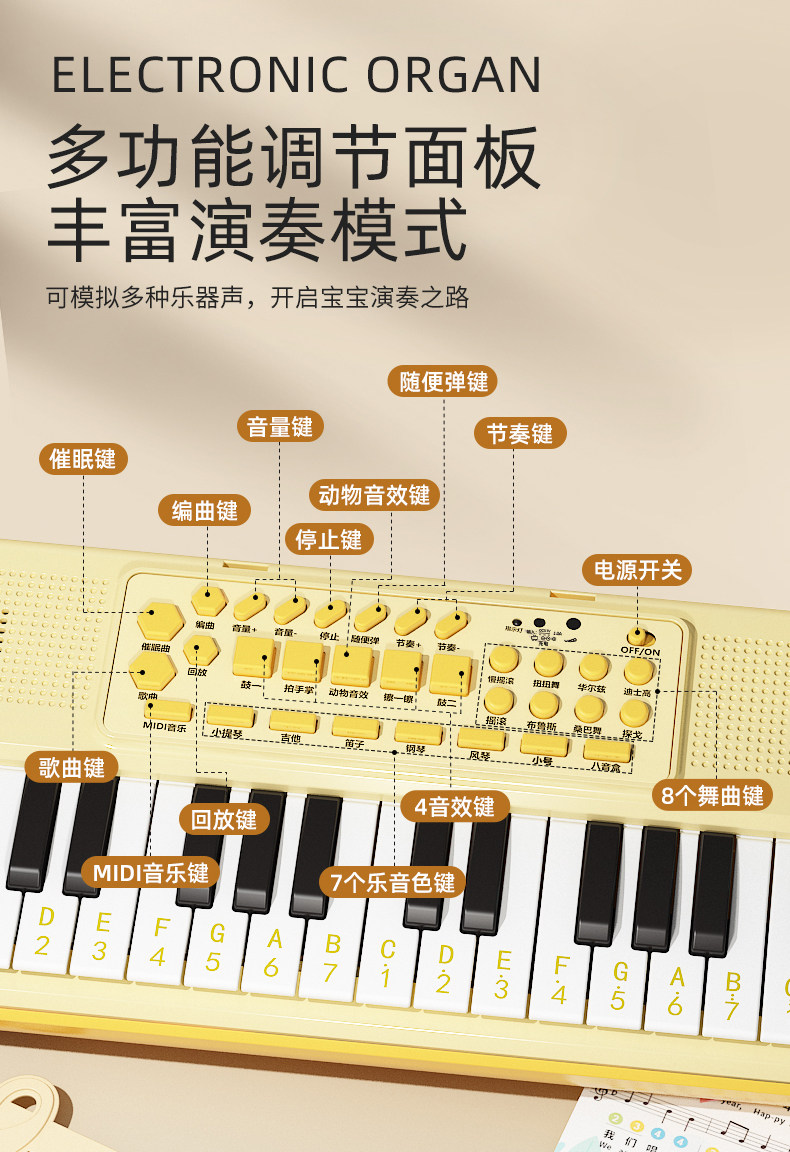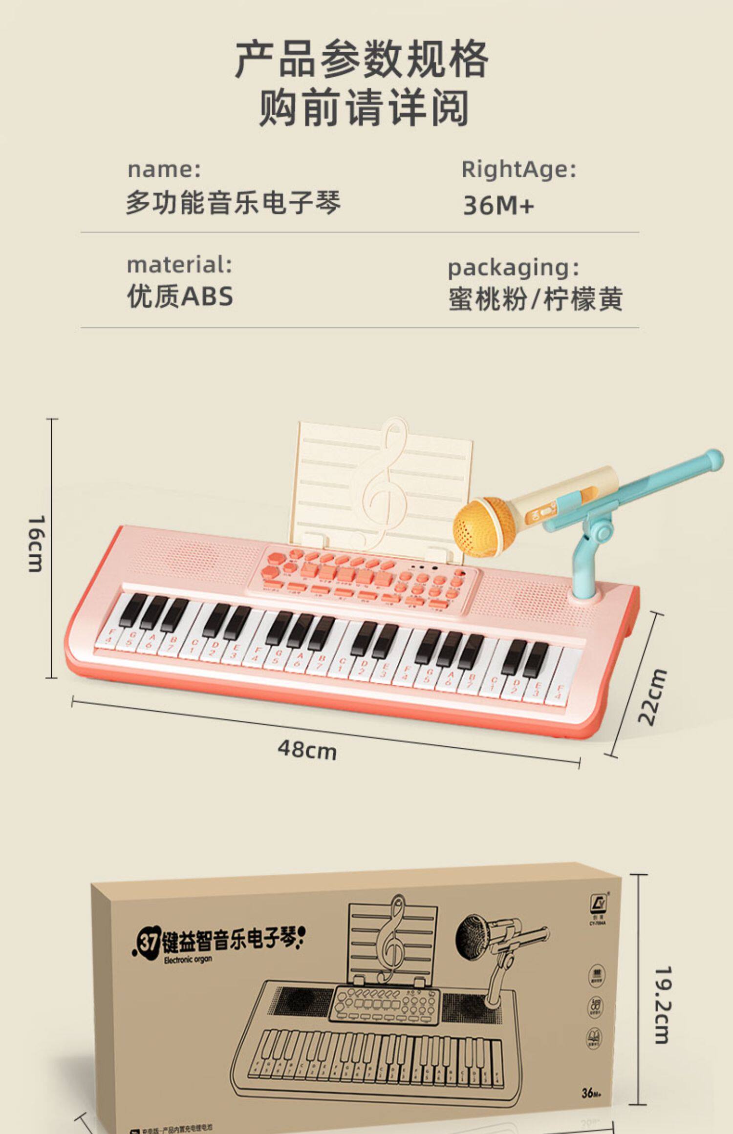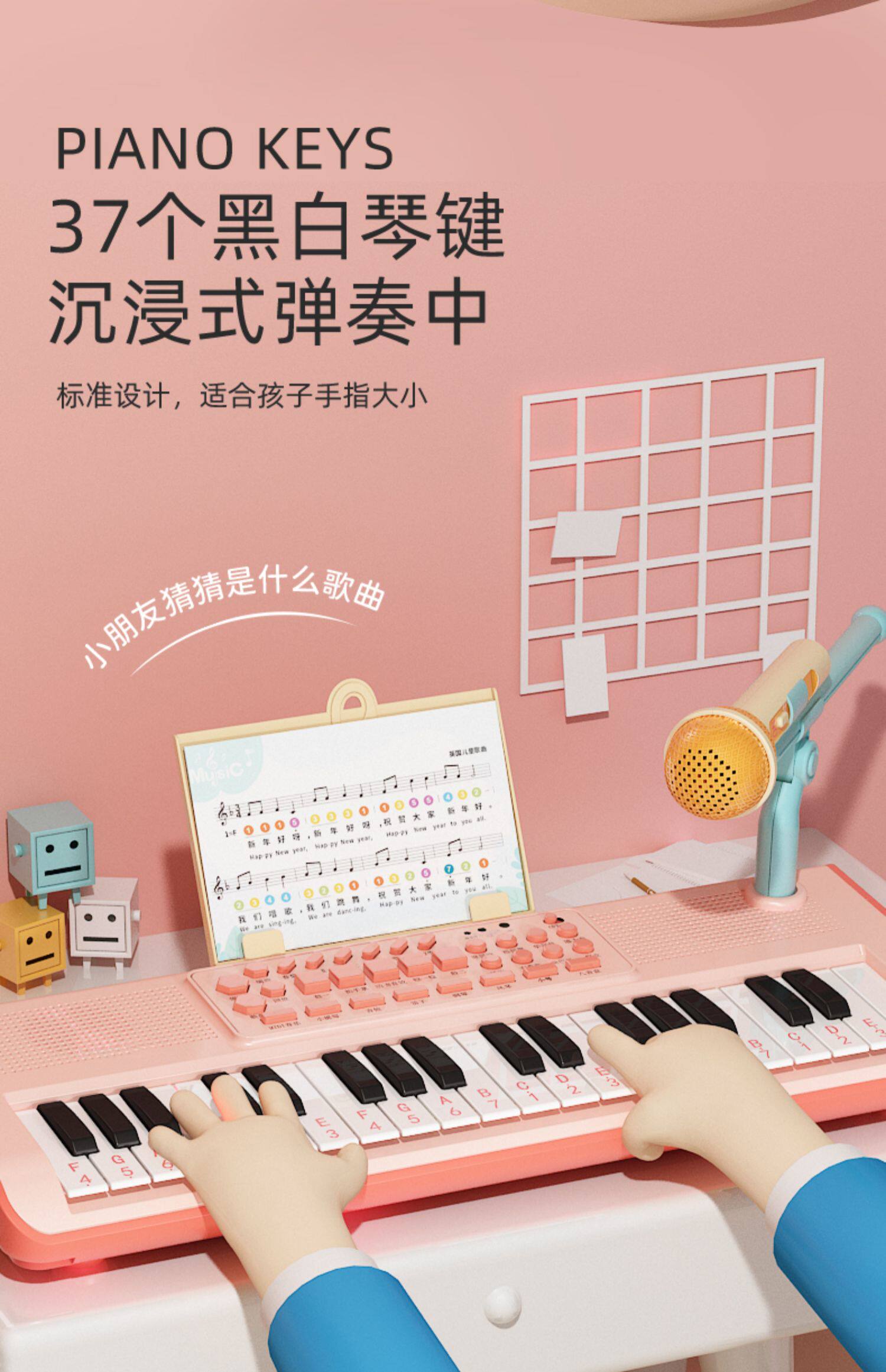 Синтезатор, детские музыкальные инструменты, детский микрофон, пианино, игрушка, 37 клавиш, подходит для начинающих, подарок на день рождения