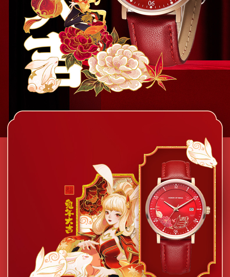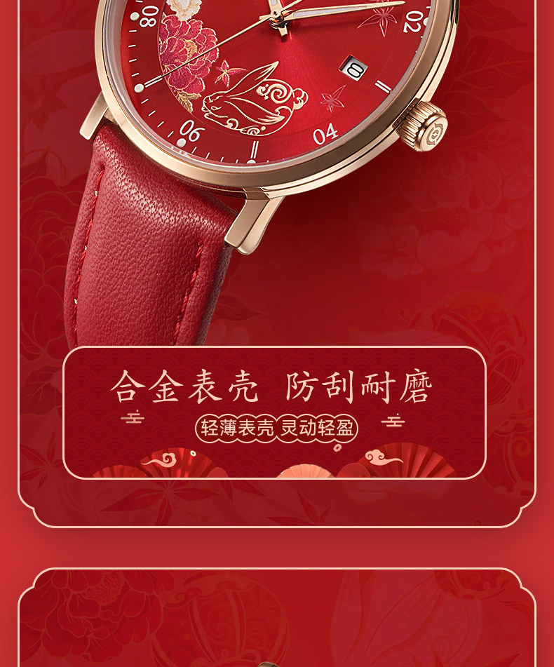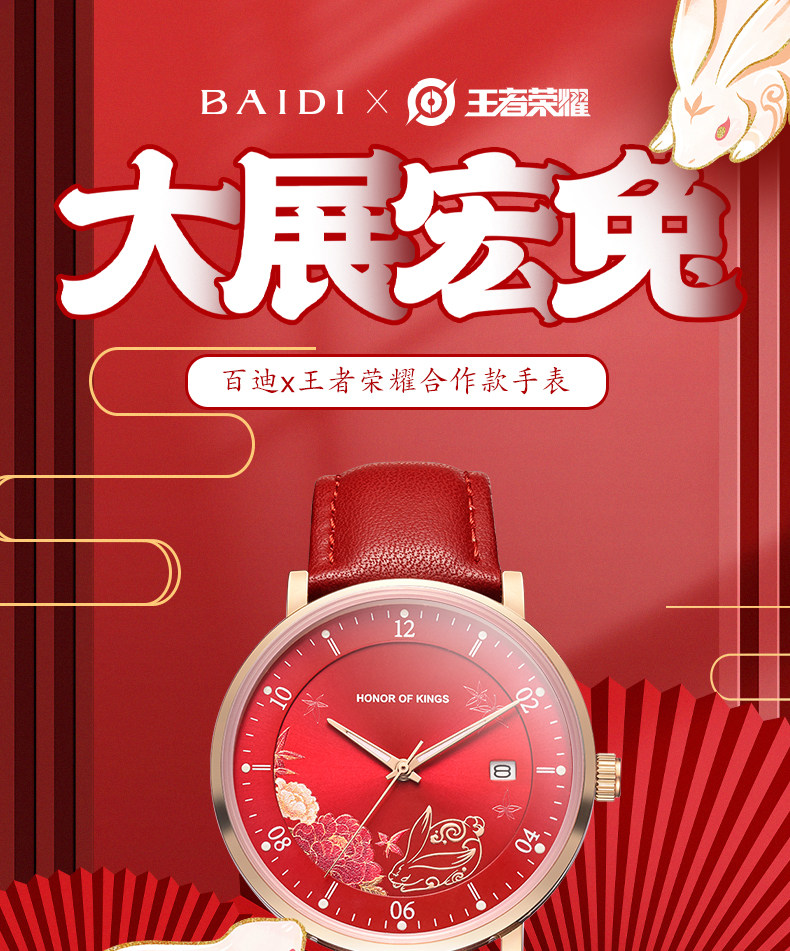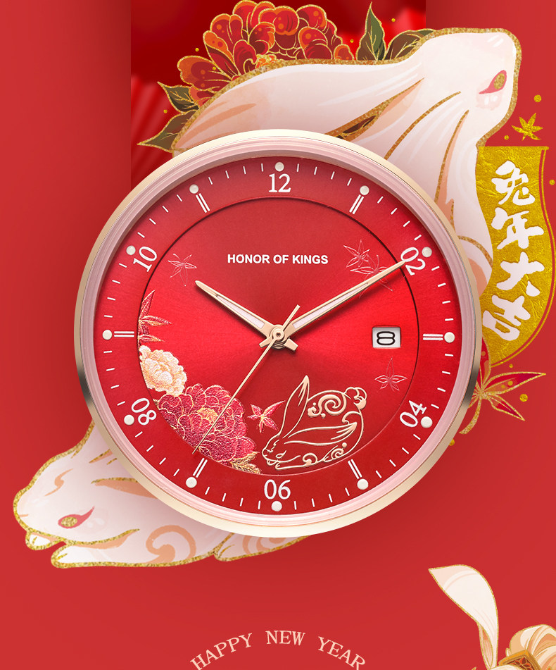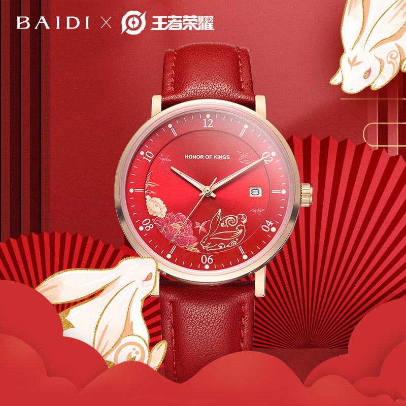 百迪 Часы для школьников, красная раскраска, оберег на день рождения, год кролика, женский стиль, коллекция 2023