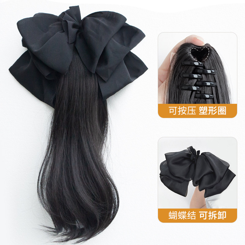 Парик с бантиком, хвостик, заколка-крабик, сверхлегкий искусственный хвост изготовленный из настоящих волос с косичкой
