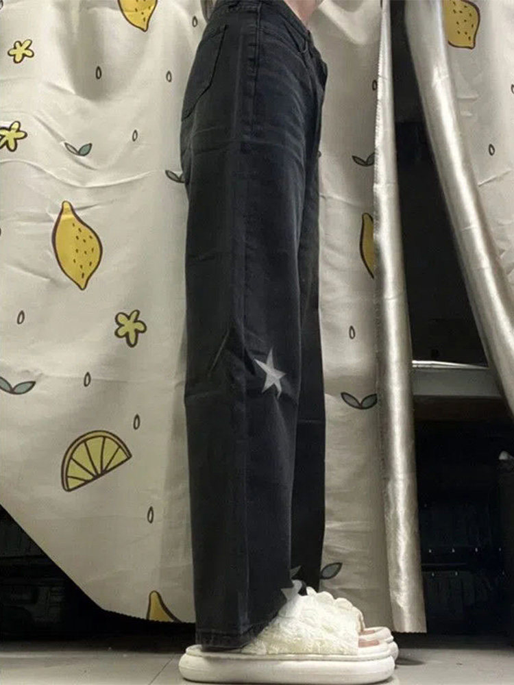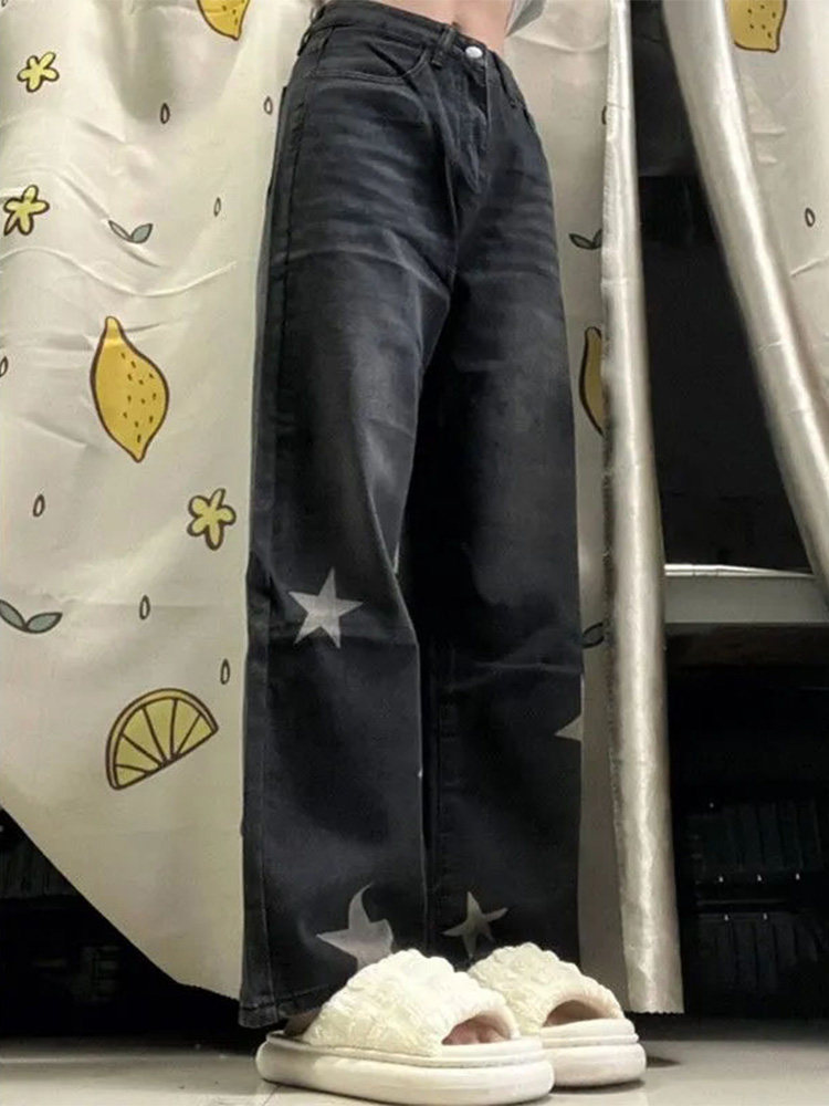 Черные джинсы, приталенные дизайнерские штаны, высокая талия, свободный прямой крой, тренд сезона