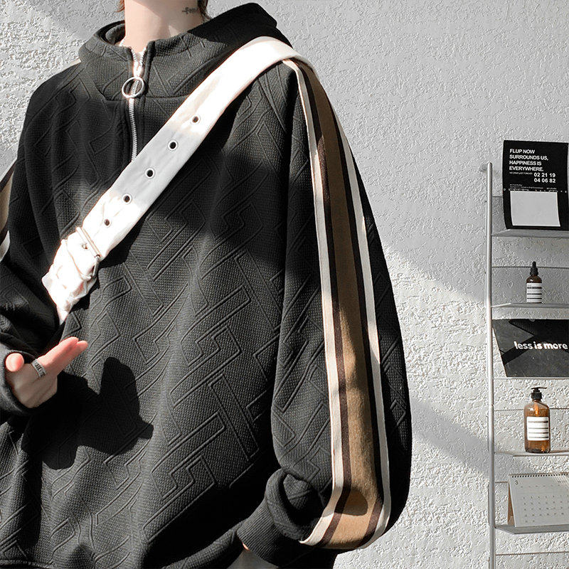 Модная брендовая мужская спортивная толстовка, стильный воротник-стойка на молнии, универсальный винтажный топ, свободная куртка в стиле vibe.