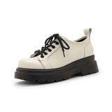 Универсальная комфортная обувь для кожаной обуви на платформе в английском стиле, из хлопка и льна, коллекция 2023, из натуральной кожи