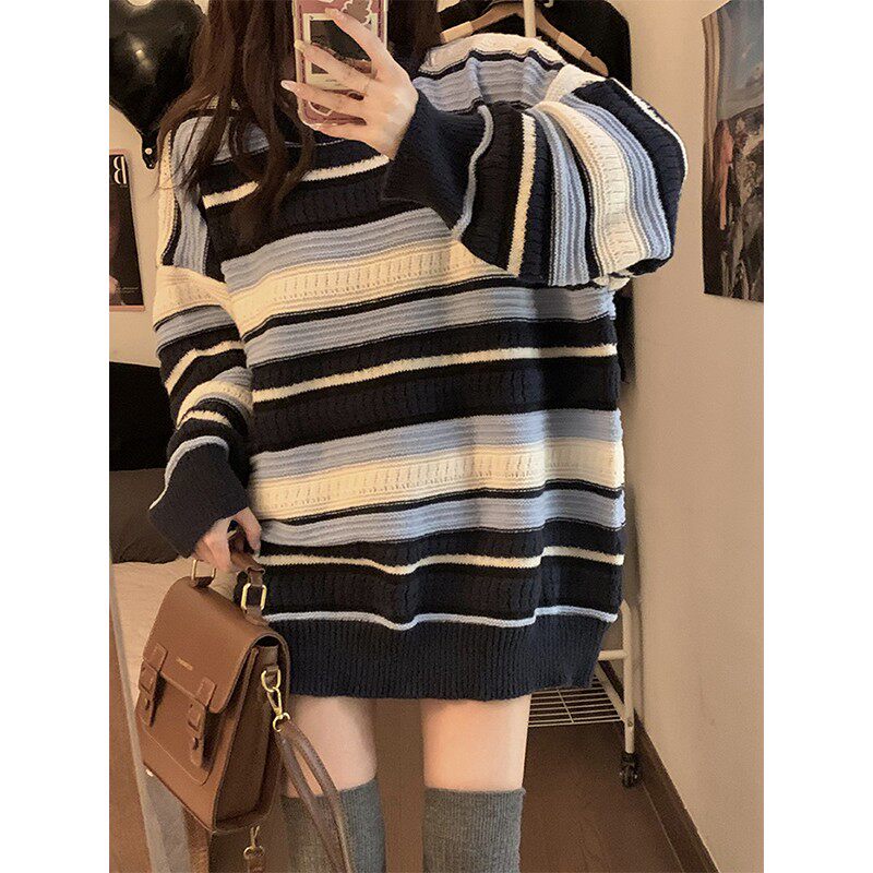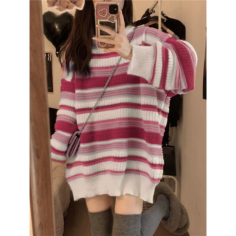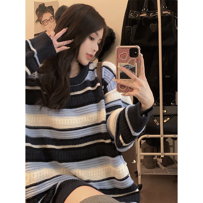 Цвет: [Розовый полосатый свитер] [Год кролика Год кролика/нежный топ Selenecaine/Design Fried Street/Base/Milk System Soft Clutiny/короткое клейкое молоко Call/Новый год], Синий японский ретро атмосферный зимний базовый свитер, французский стиль