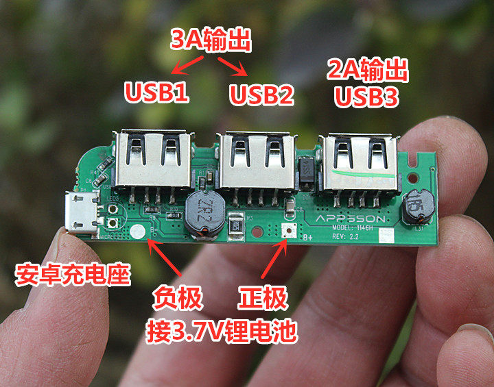 Новая зарядная плата сокровищ вход 3,7 В USB1 USB2 Выход 5V 3A, USB3 Выход 5V2A