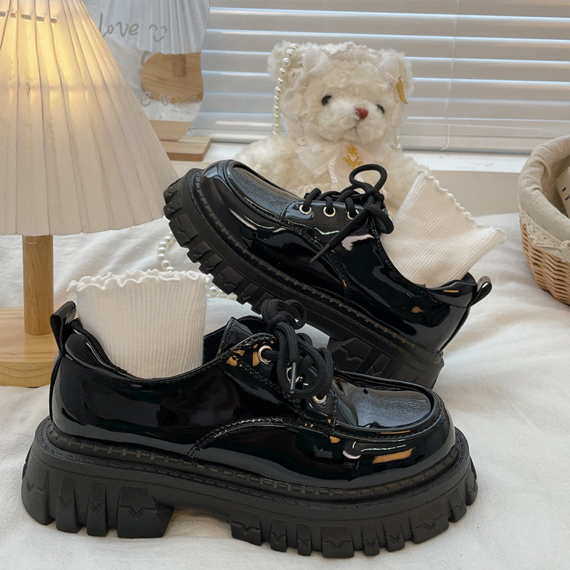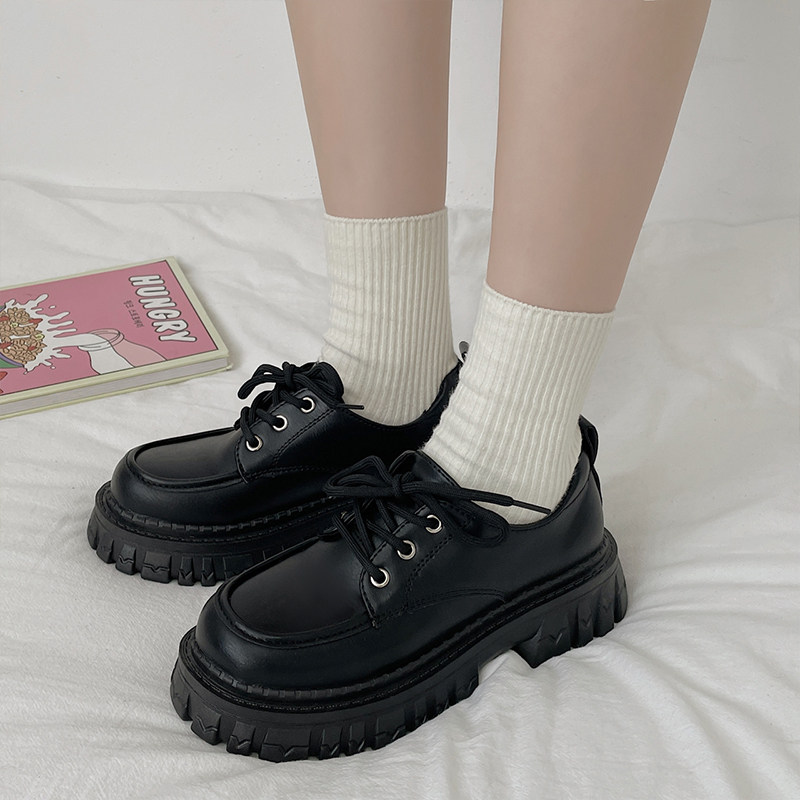 Черная весенняя универсальная высокая японская обувь в английском стиле на платформе для кожаной обуви, в британском стиле, 2025 года, тренд сезона