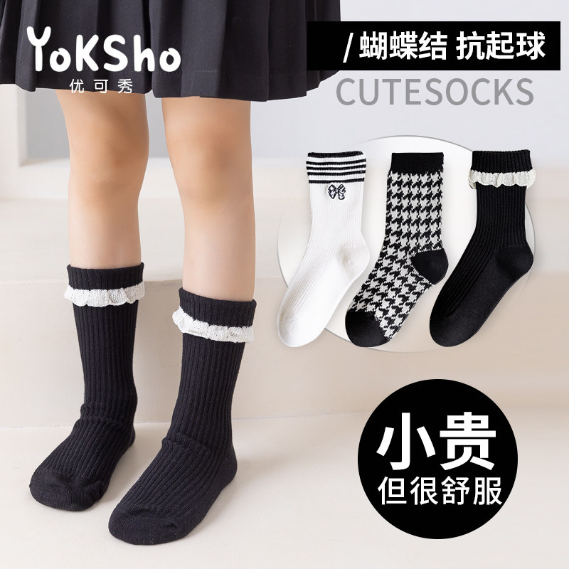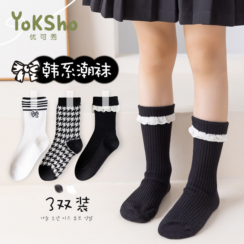 Демисезонные носки, хлопковые черные детские гольфы, средней длины, подходит для подростков