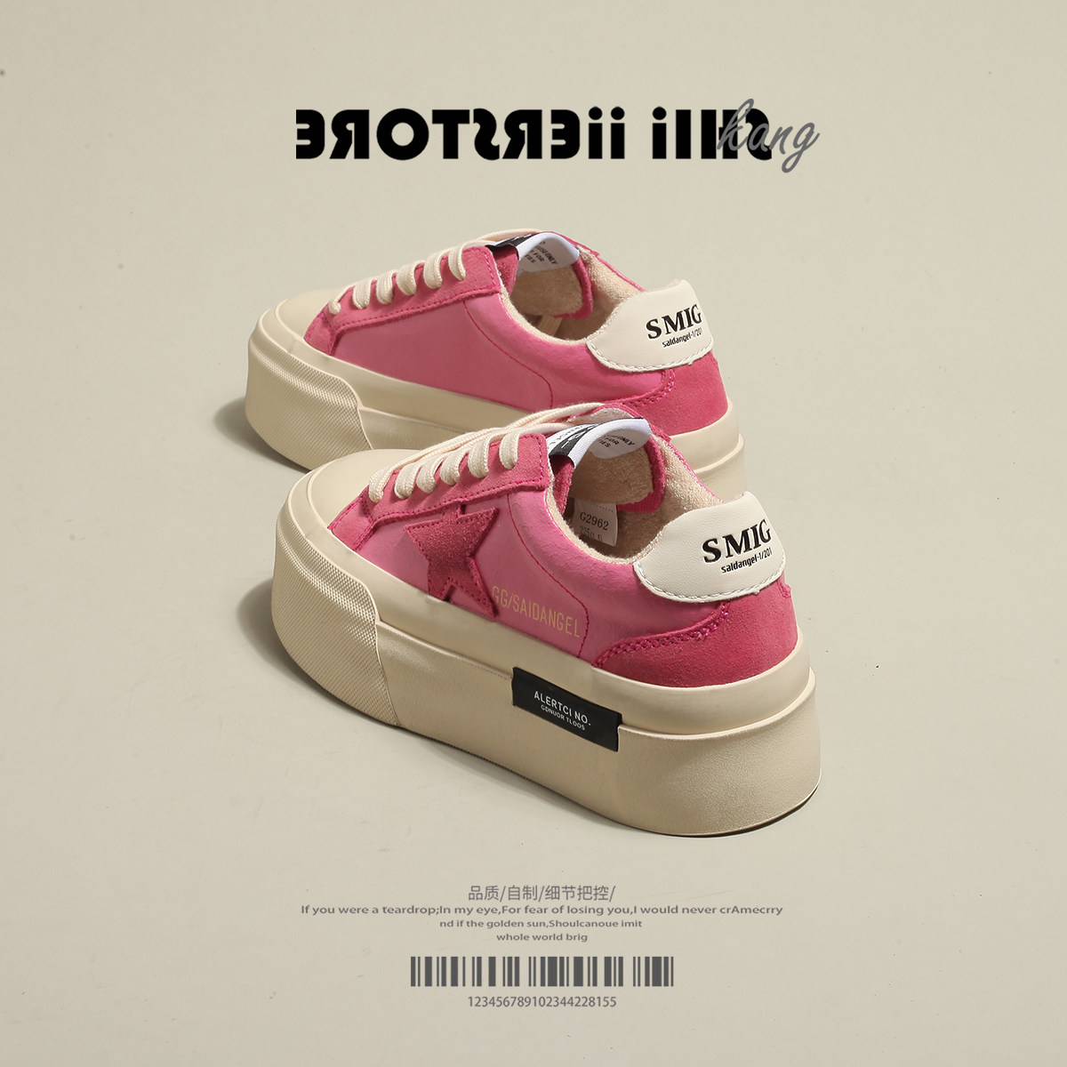SHIMIER Shi Mier Молодежные и возрастные туфли ~ Розовые туфли со звездами на толстой подошве, женские белые туфли, повседневные кроссовки, увеличивающие рост