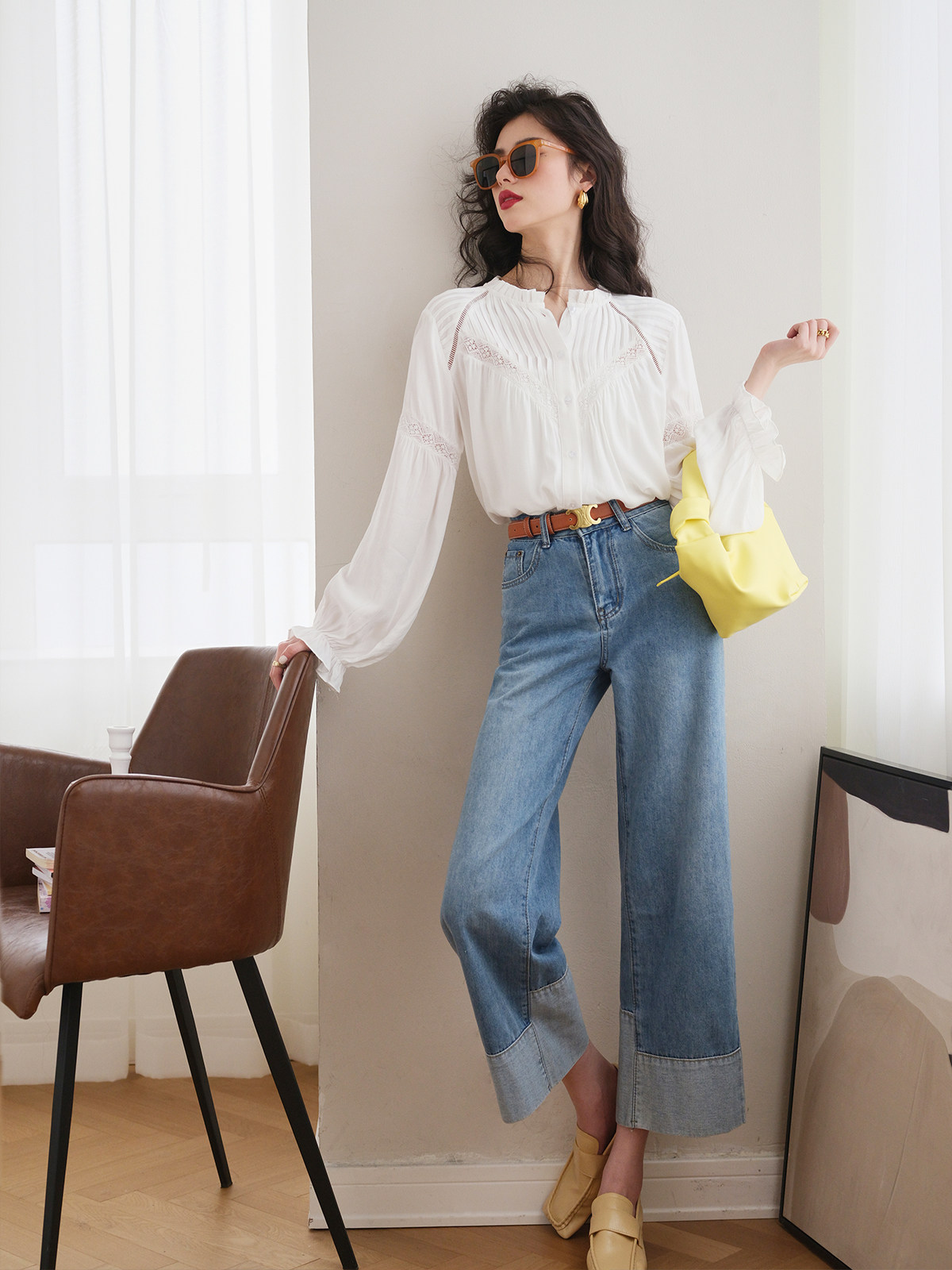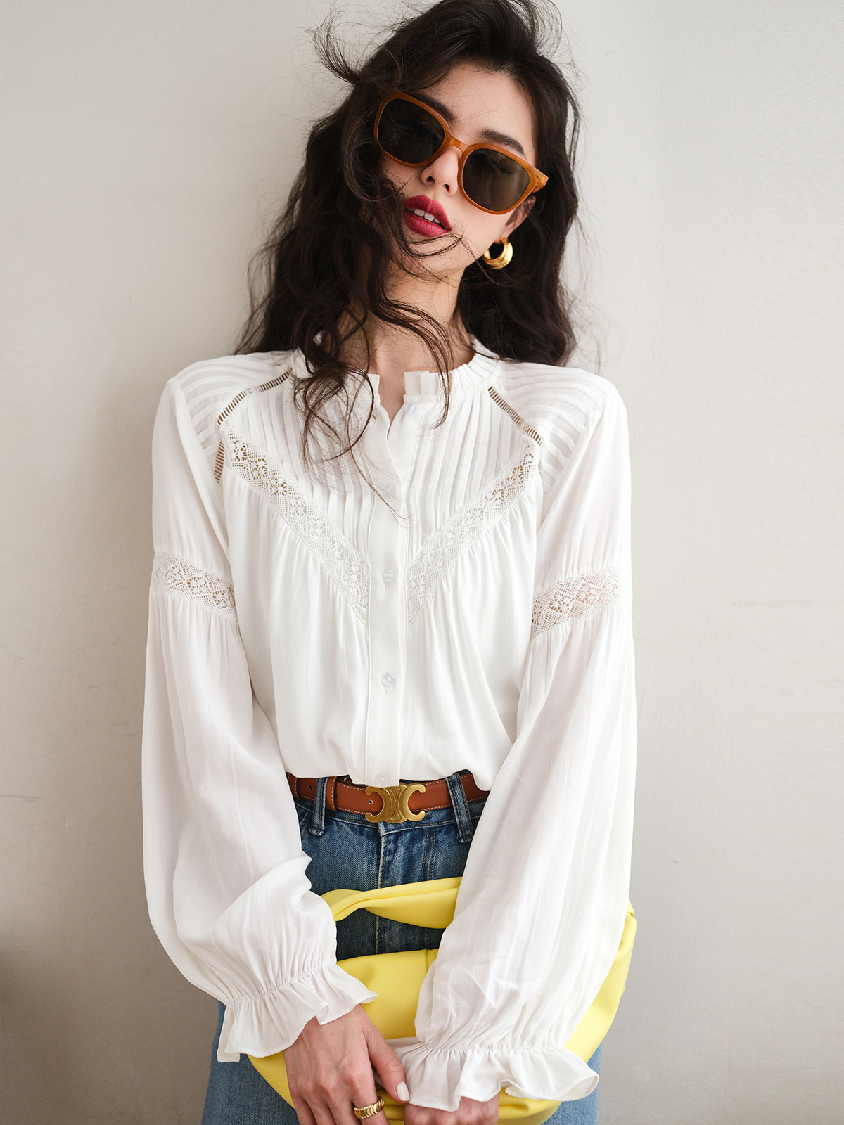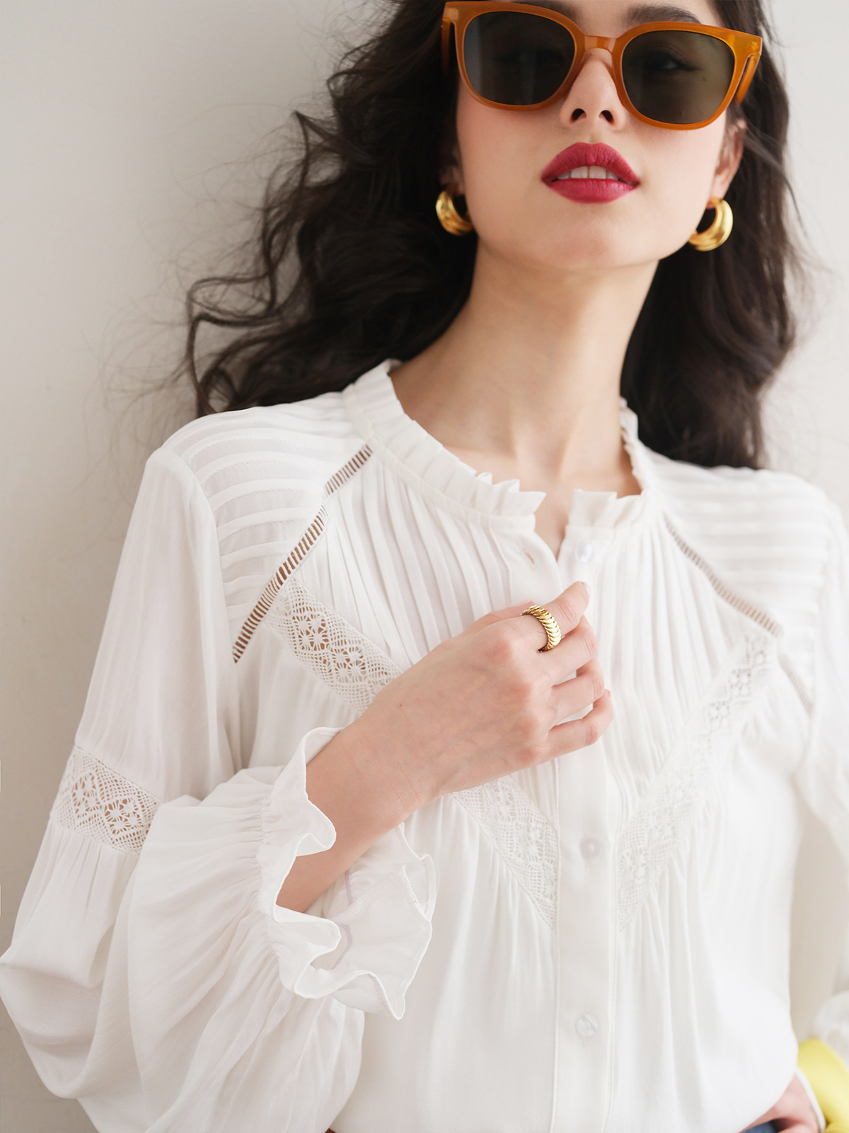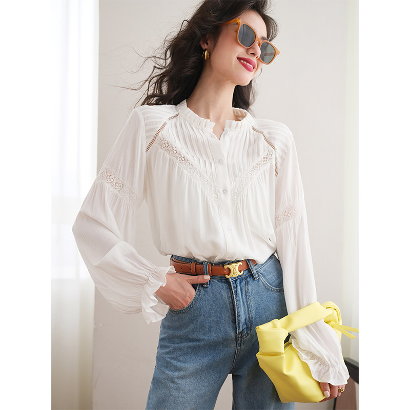 Весенняя кружевная дизайнерская белая рубашка, французский стиль, 2023, тренд сезона