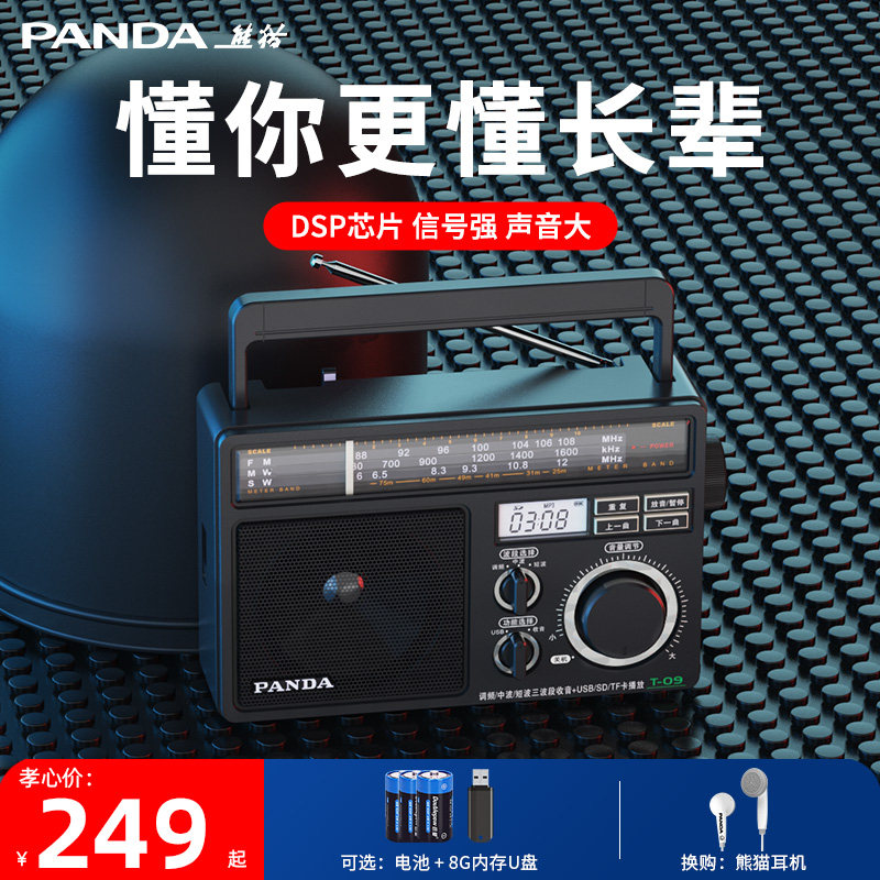 Panda T-09 Новое радио пожилой пожилой пожилой настольный настольный столик пожилой полупроводник пожилой старомодный старомодный FM Регуляция частоты FM