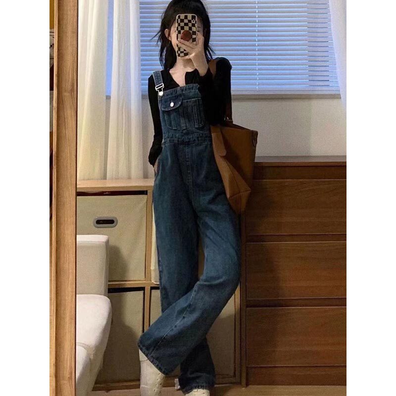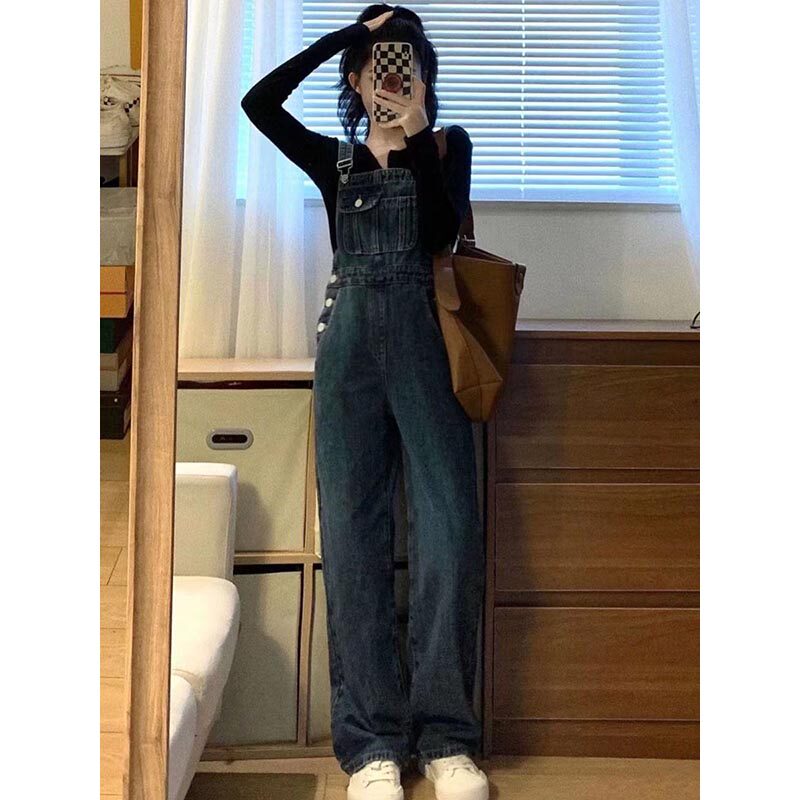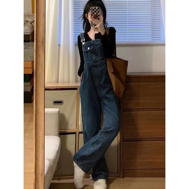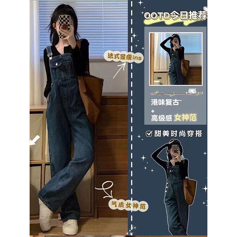 Ретро джинсовый комбинезон, весенние осенние дизайнерские штаны, французский стиль, 2024 года, подходит для подростков, тренд сезона