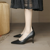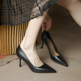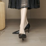 Черная ботинка с высоким уровнем обуви женская женщина с тонкой каблукой с мягкой кожа