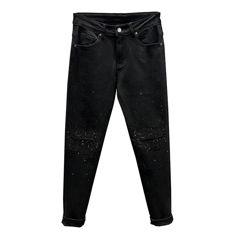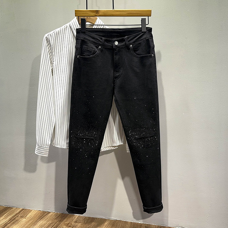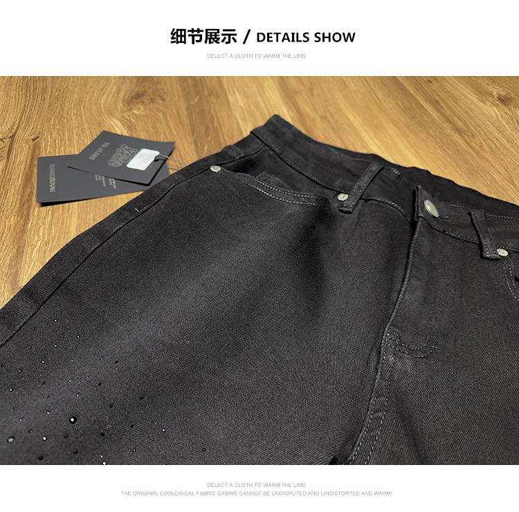 Мужские черные джинсы, осенние штаны, популярно в интернете, модель весна/осень 2023 года, облегающий крой