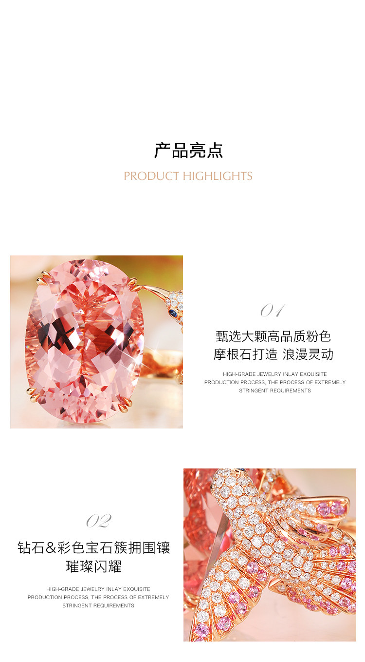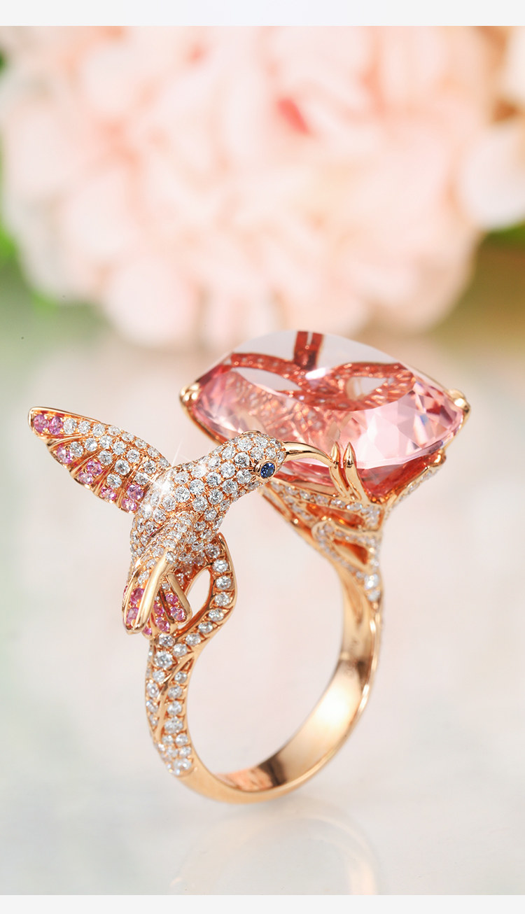 珠宫 Розовый Morgan Stone Bird Diamond Ring Cring