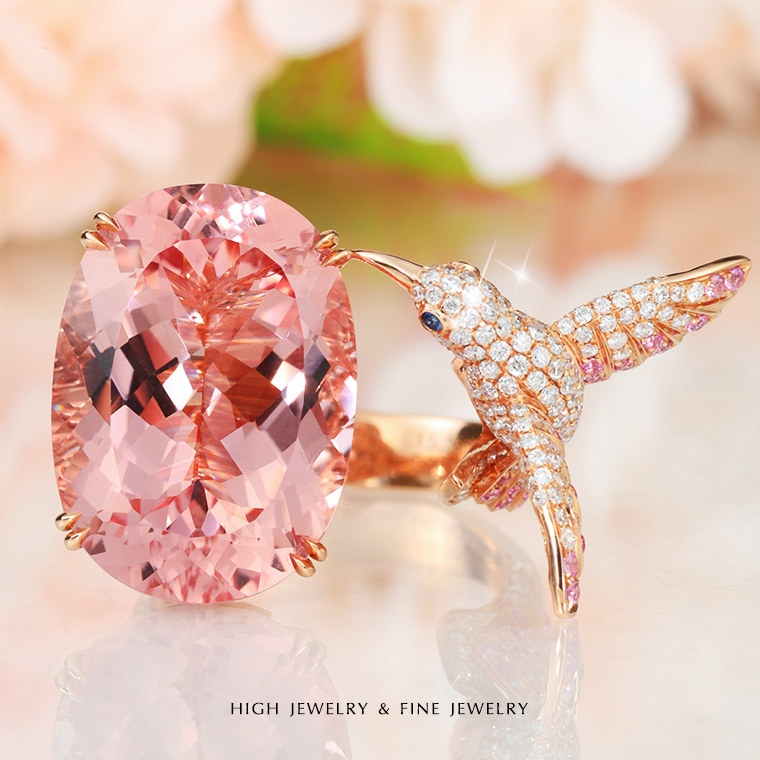 - Кольцо с морганитом и птицей с бриллиантом