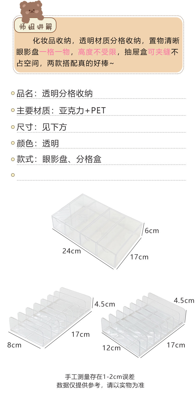 Прозрачные палетка теней, система хранения, пудра, настольная коробка для хранения, база под макияж, косметическая помада