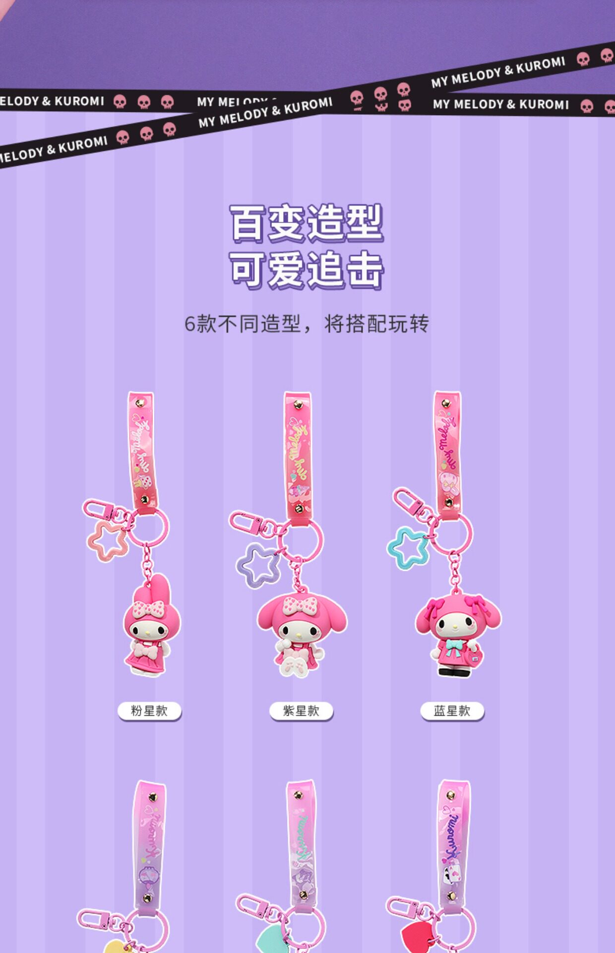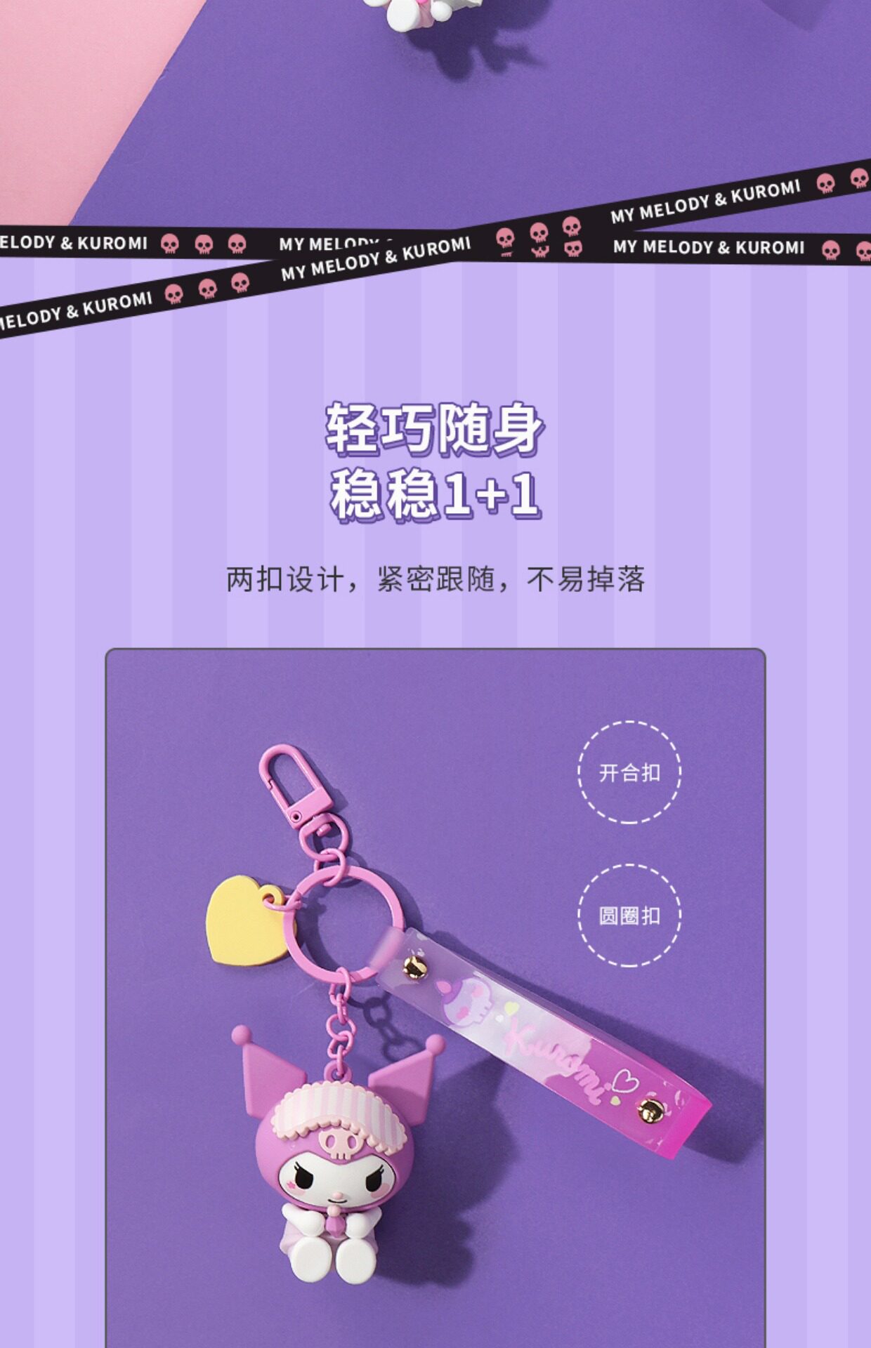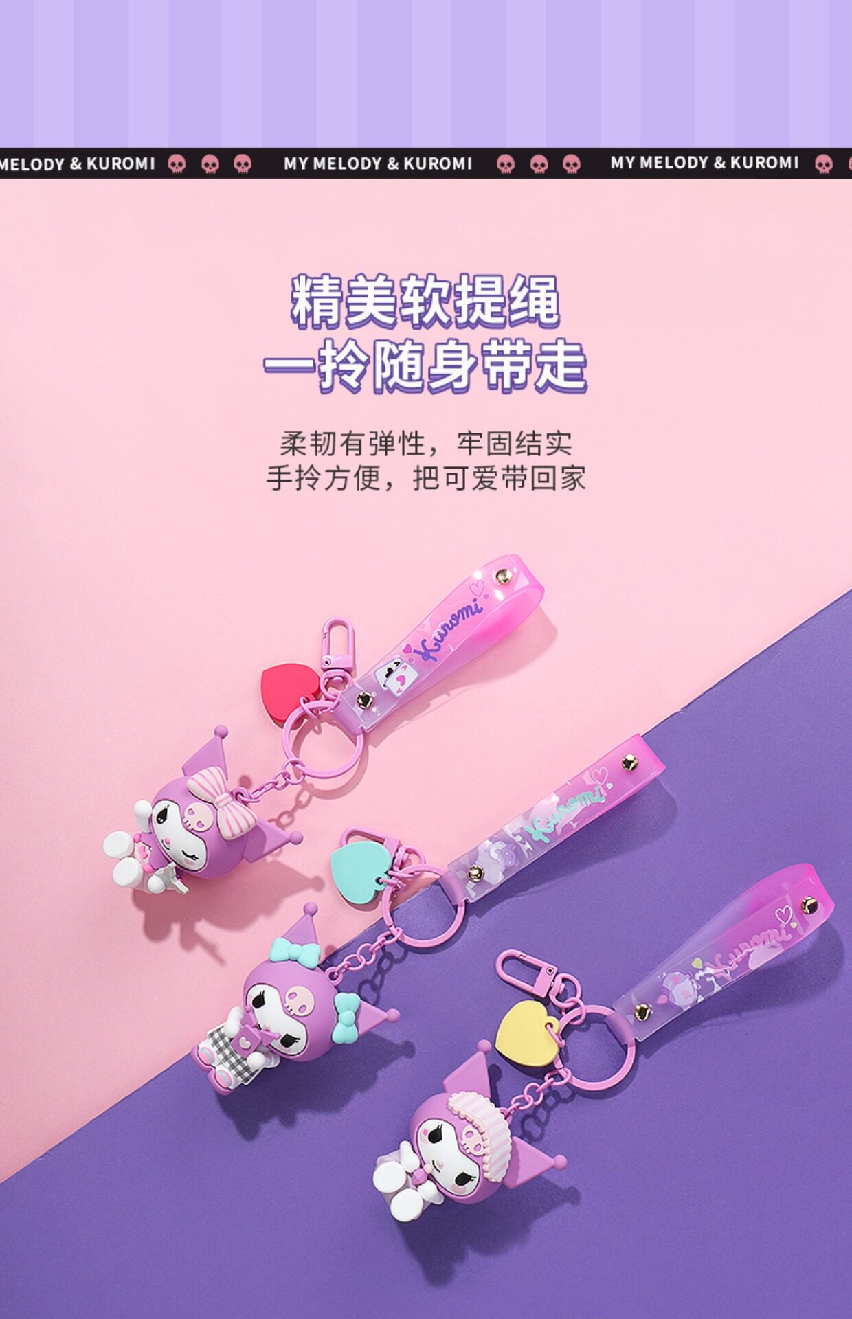 MINISO известный продукт Sanrio Melody Kuromi кулон в форме сердца, брелок для ключей, милый кулон в виде сумки