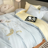 Хлопковый комплект, хлопковое одеяло, пододеяльник, высококлассная простыня, 4 предмета, с вышивкой, постельные принадлежности