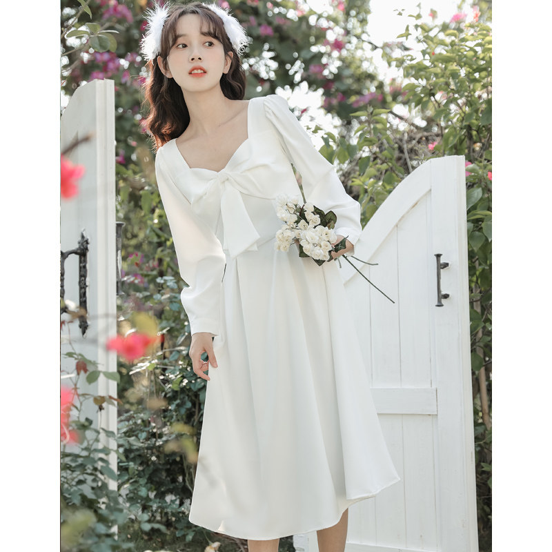 Наряд маленькой принцессы, белое весеннее платье подружки невесты, французский стиль, 2023, в корейском стиле