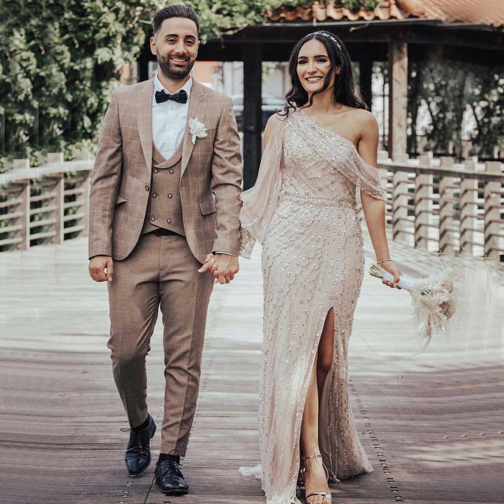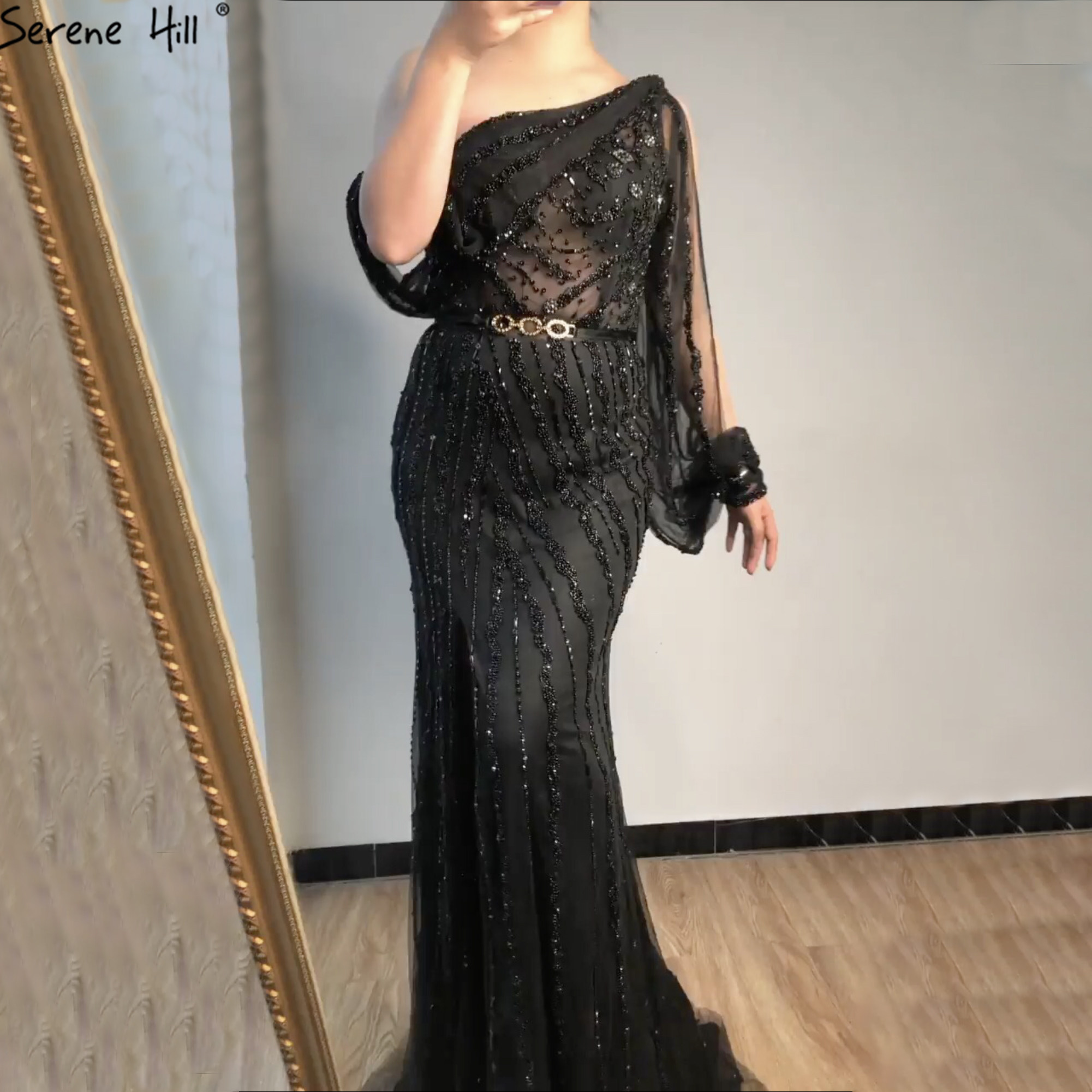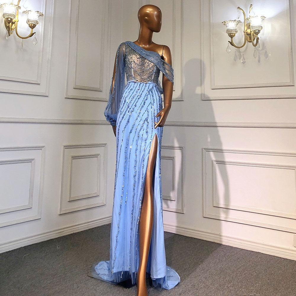 Blue Dubai One Shouder Sexy Othestones выпускные платья роскошь