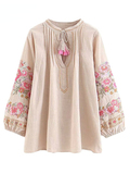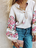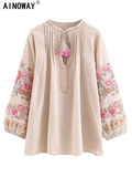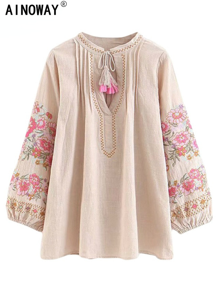 Весенняя модная женская льняная хлопковая блузка с кисточками и цветочной вышивкой, пляжная богемная блузка, рубашки, топы, свободная рубашка в стиле бохо с длинными рукавами