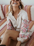 Весенняя мода Женщины Женщины Клайки Цветочный Охваток Ленен Коттон Б