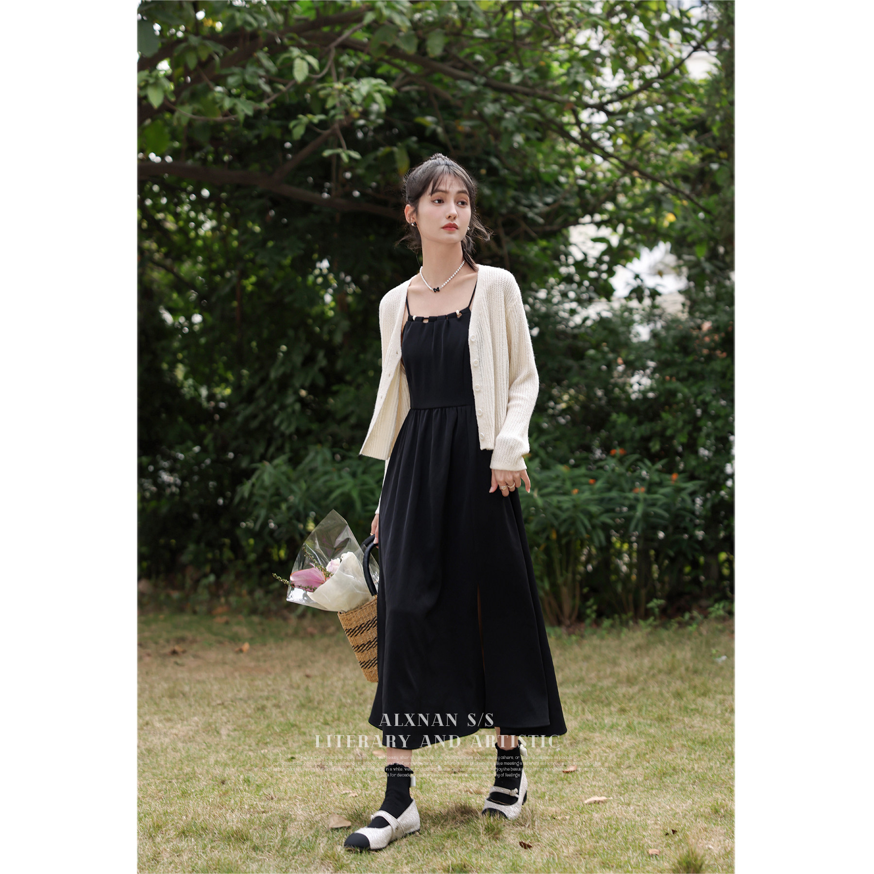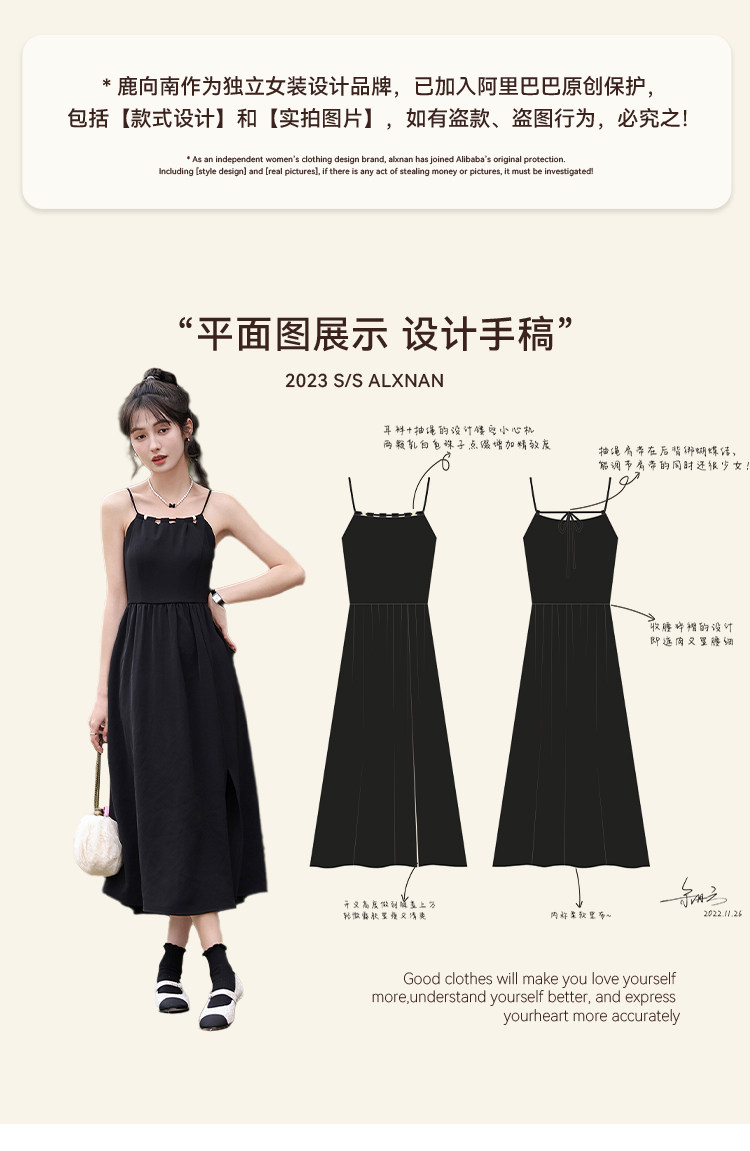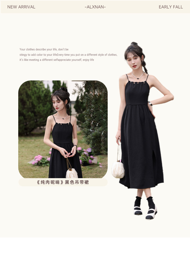 鹿向南 Черное платье, весенняя юбка, французский стиль