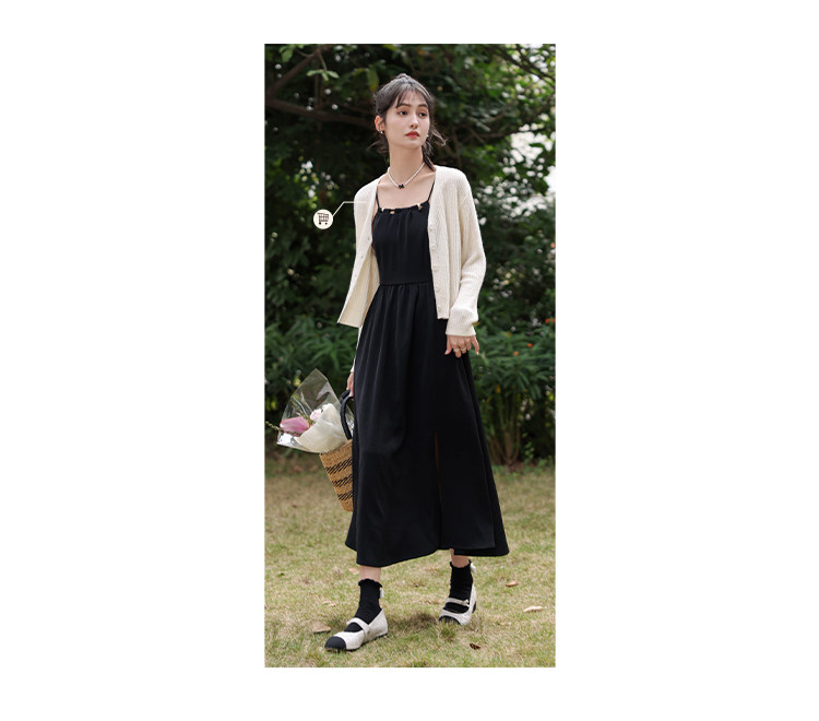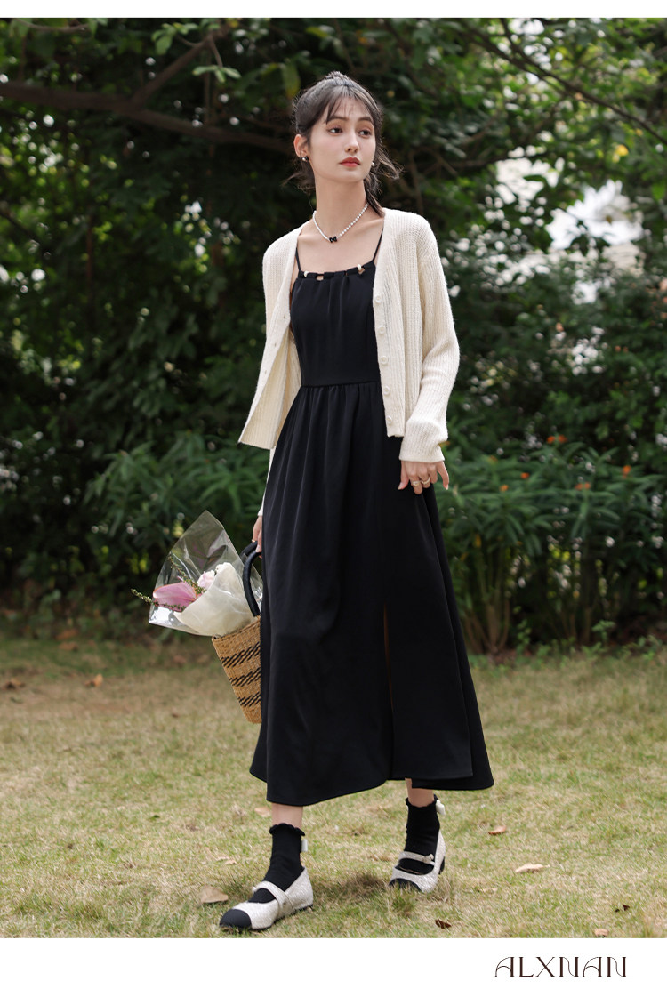 | Цвет: | Черное платье-комбинация, Абрикосовый трикотажный свитер |
