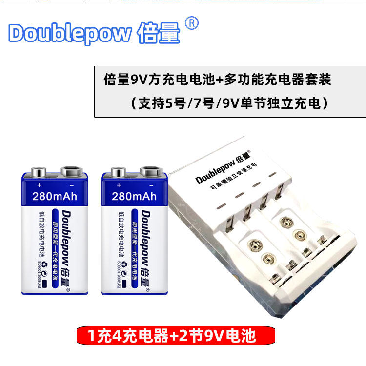 Описание пакета:; Купите двойное многофункциональное зарядное устройство трехразового использования с четырьмя гнездами, оснащенное двойным количеством 2 ячеек 280 мАч 9В.Перезаряжаемая батарея с никель -гидридом