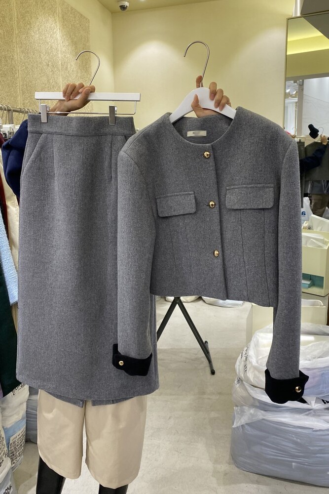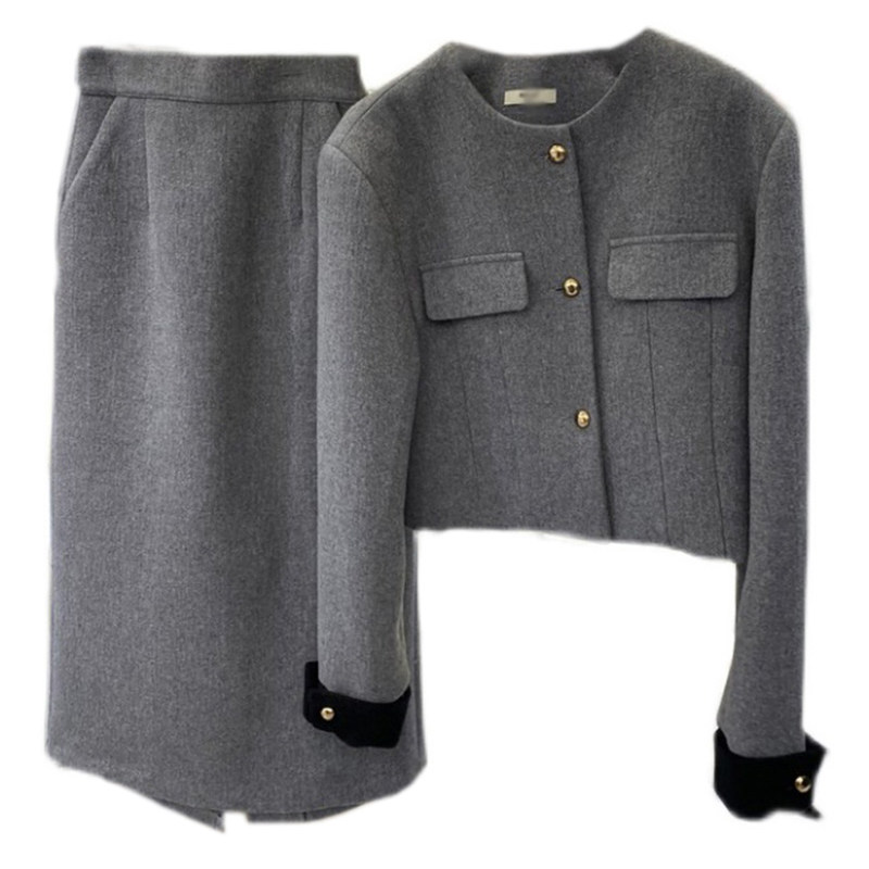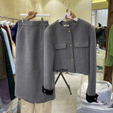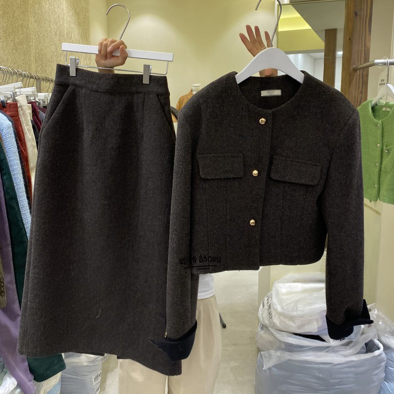 Демисезонный товар, короткий шерстяной костюм, юбка, комплект, в корейском стиле