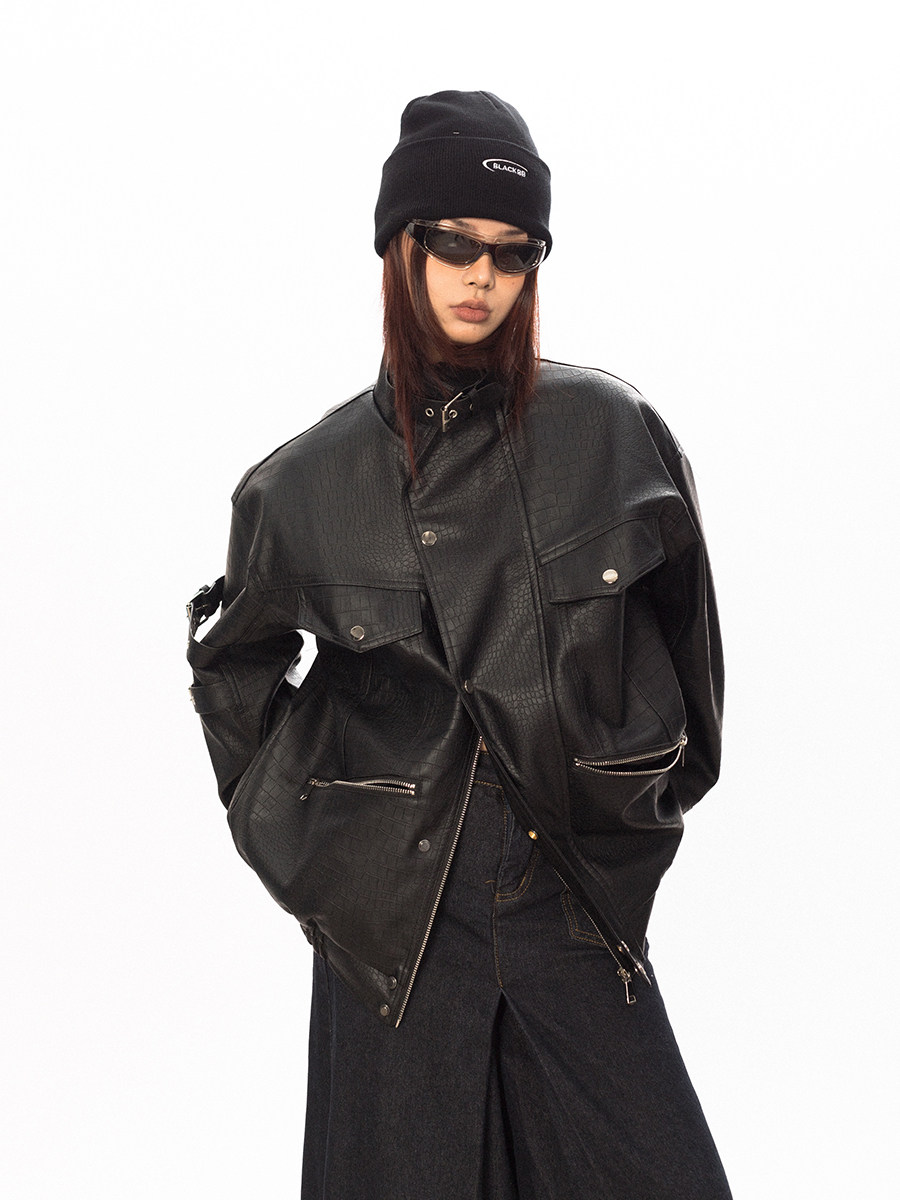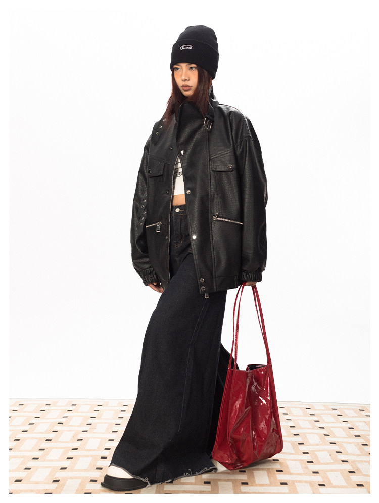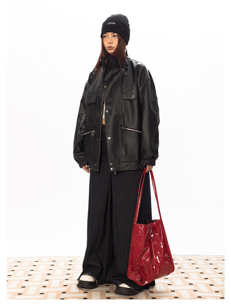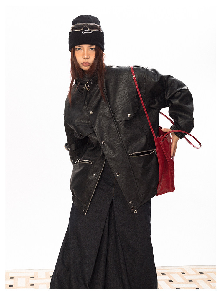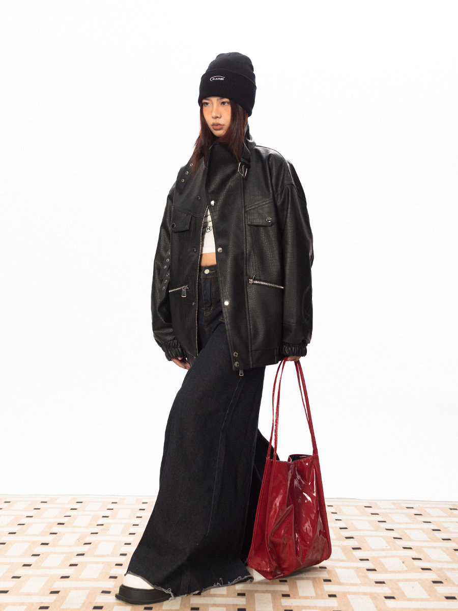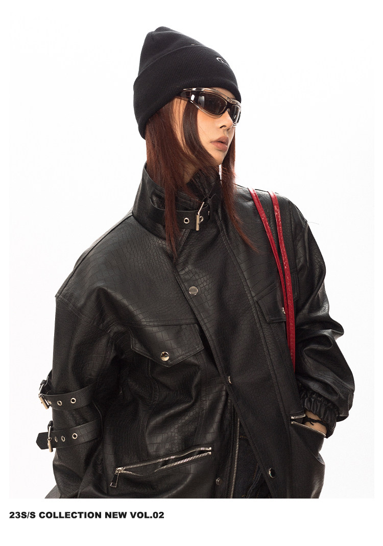 Весенняя полиуретановая красная куртка, тренд сезона, крокодиловый принт