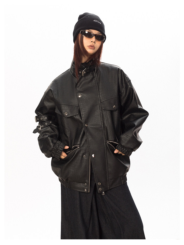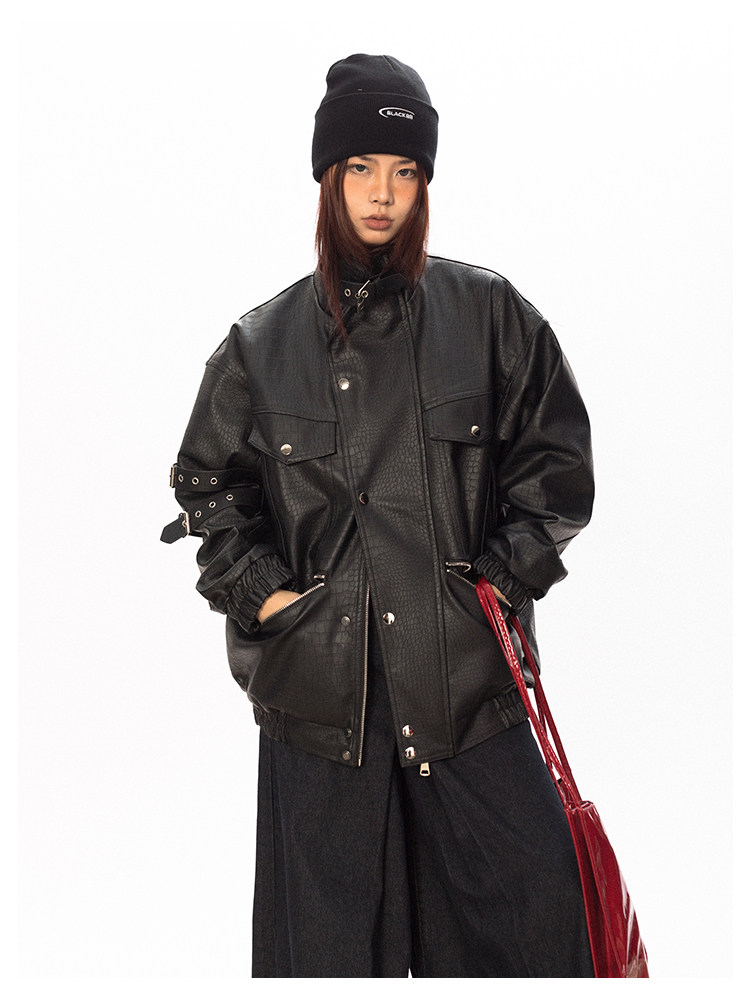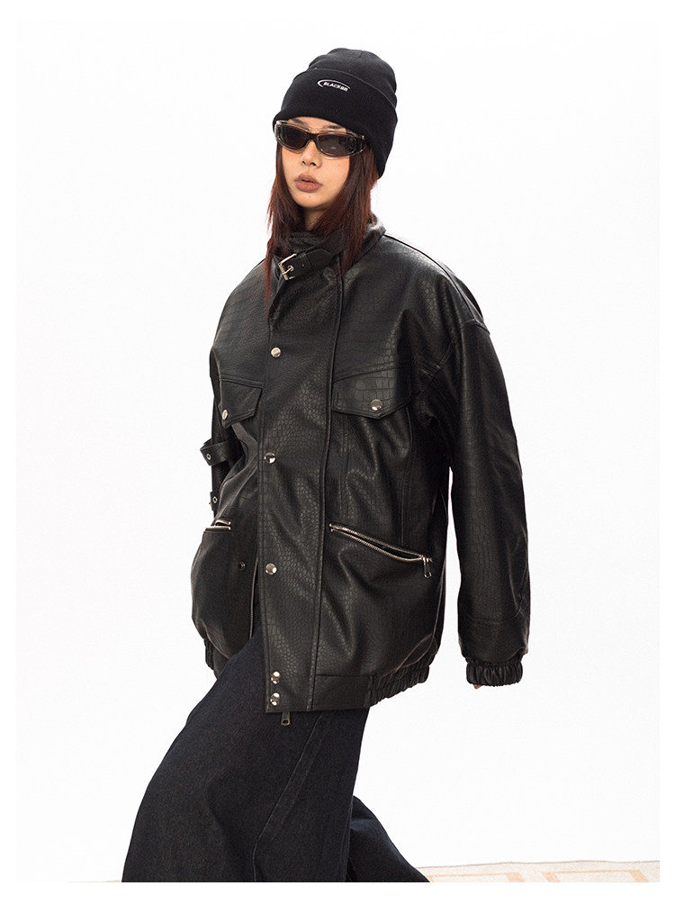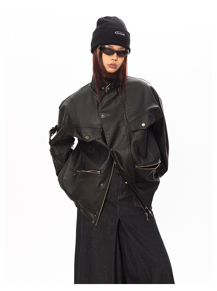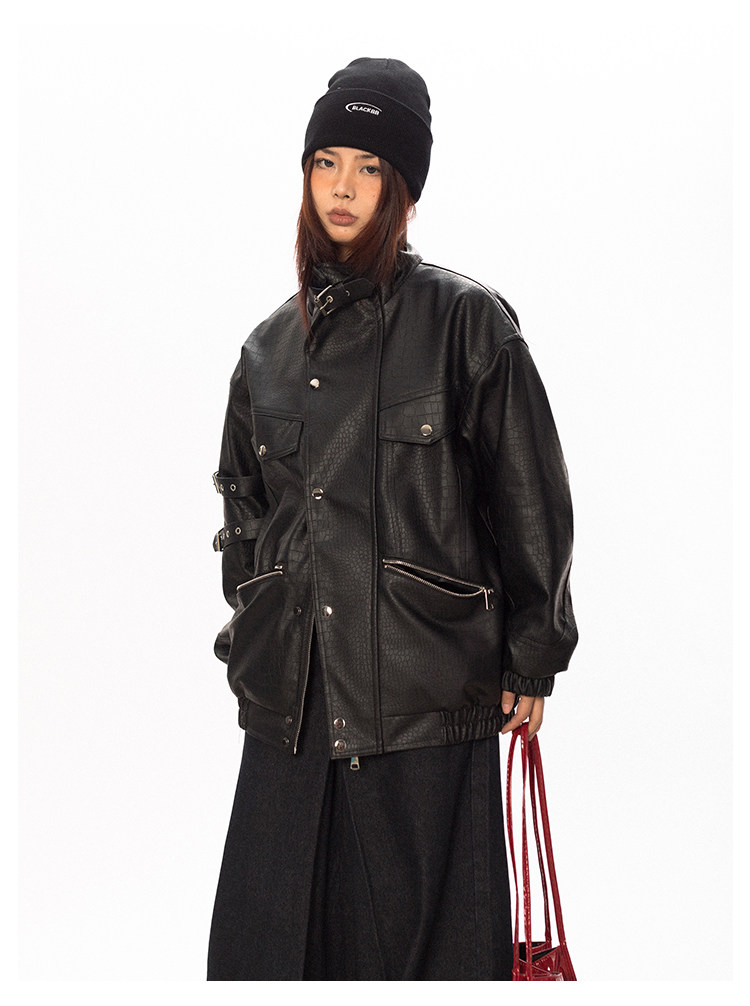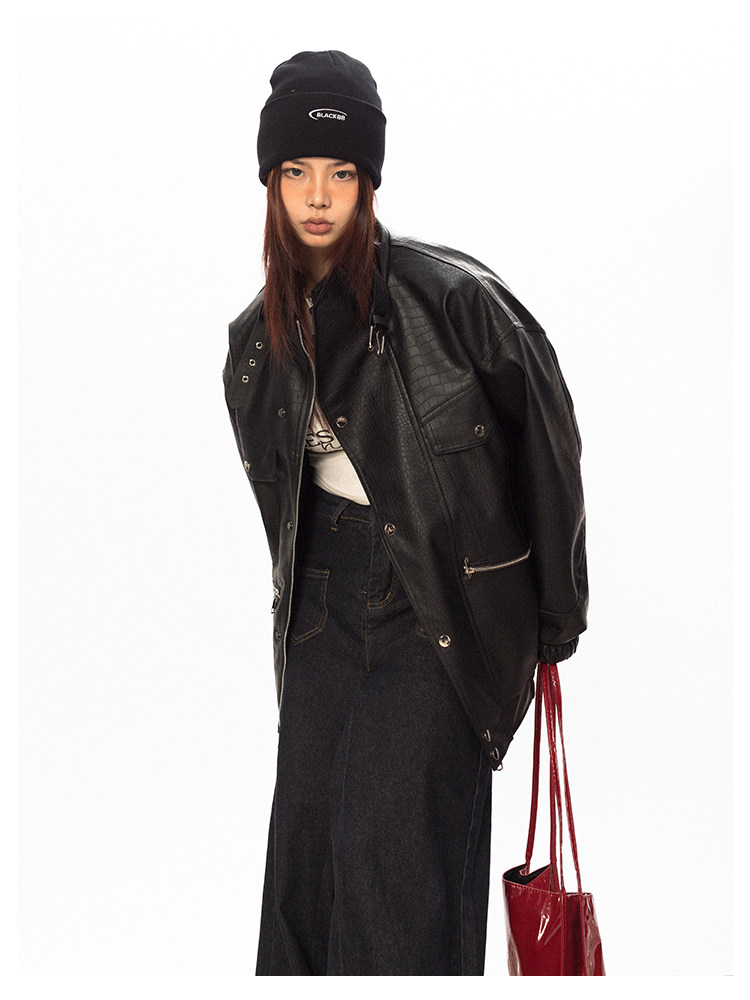 Весенняя полиуретановая красная куртка, тренд сезона, крокодиловый принт