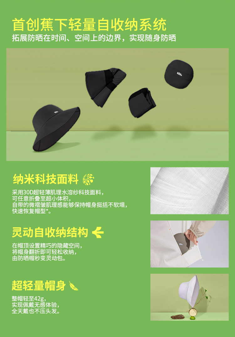 蕉下 Ношение шляпы TS50824 Ultra-Light Sun Operation может хранить ультрафиолетовые и дышащие складные рыбаки шляпы