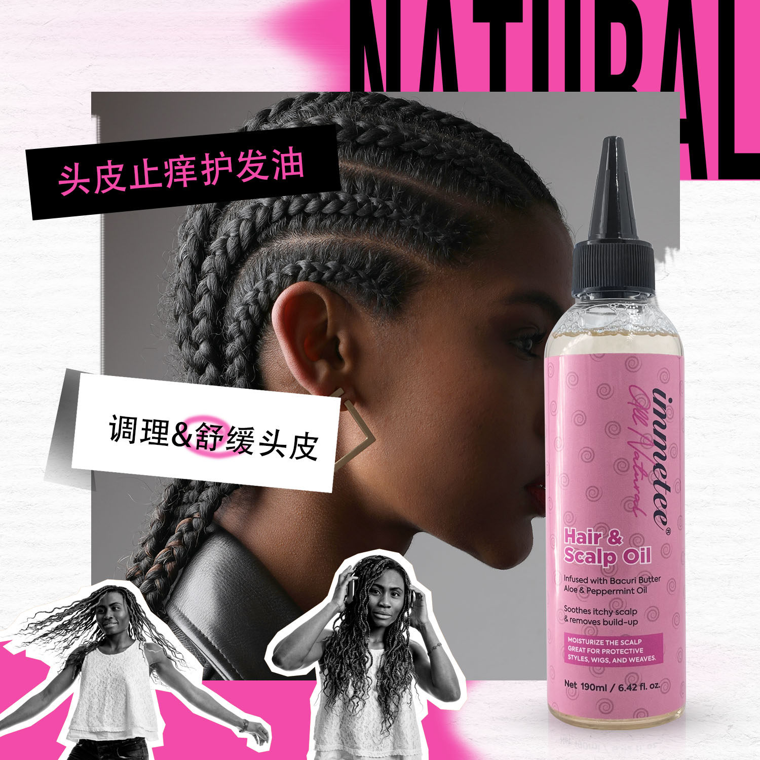 Анти-кишечная кожа, успокаивающие волосяные фолликулы, зуд, грязные косы, ингибируют скальп перхоти и зудящее масло