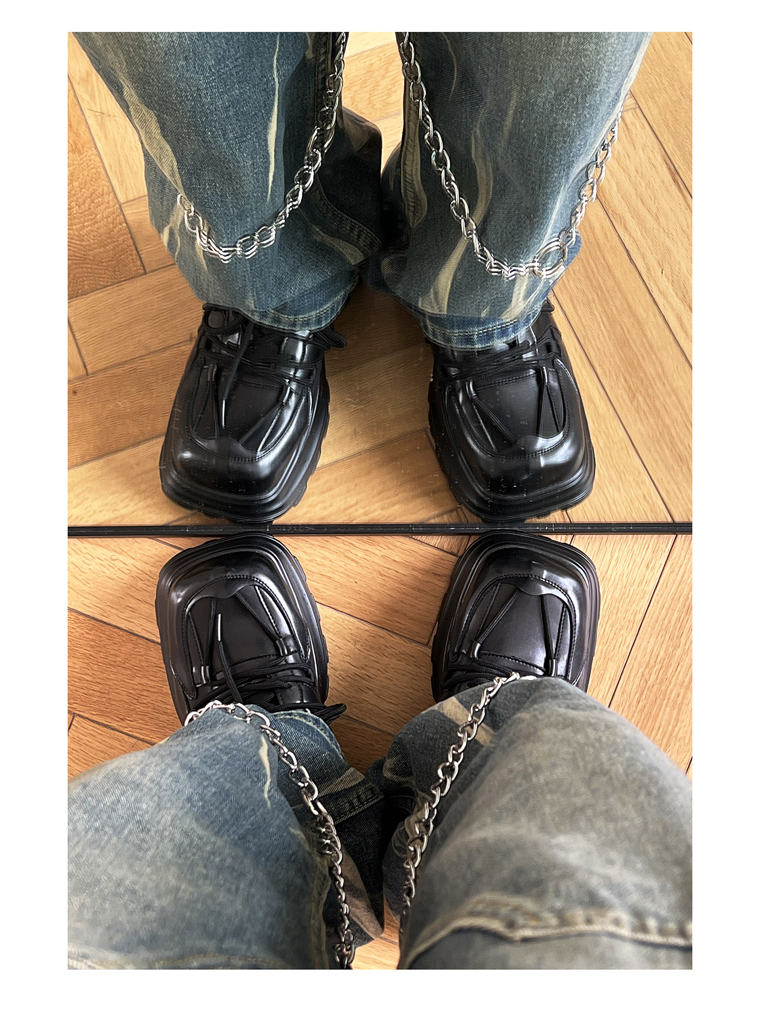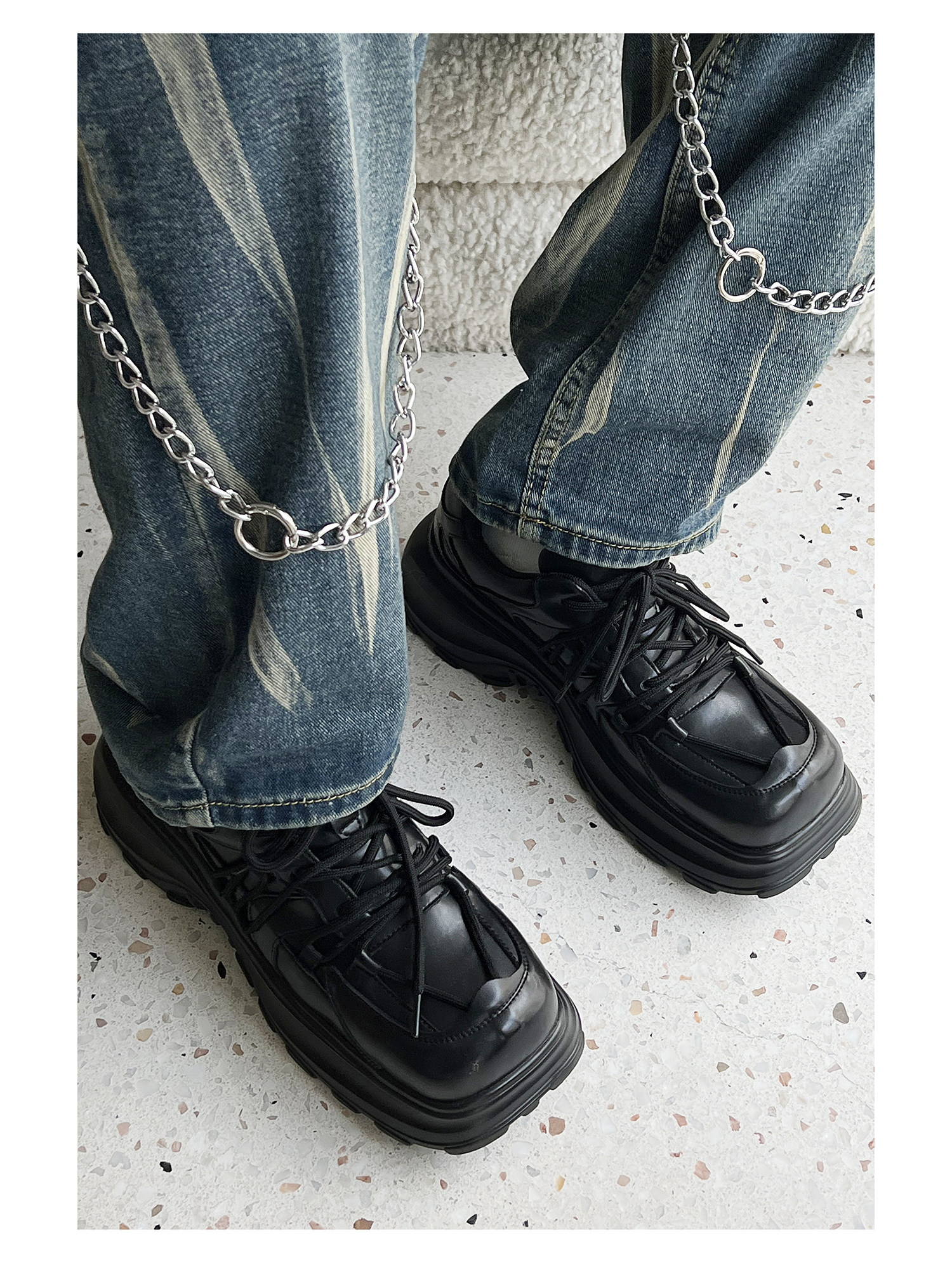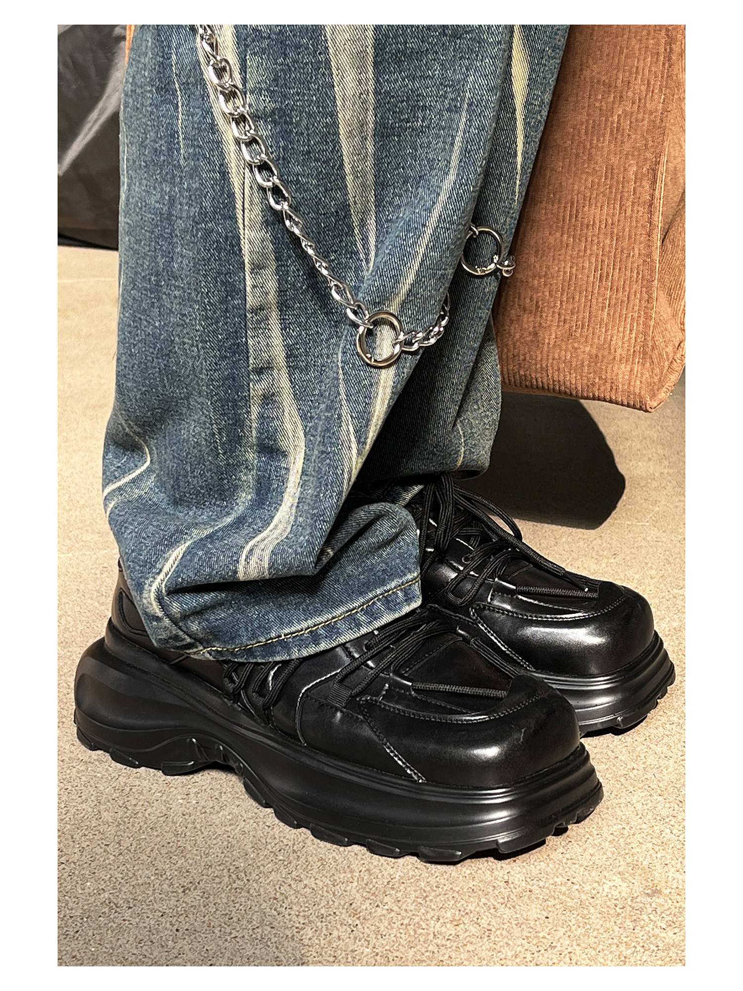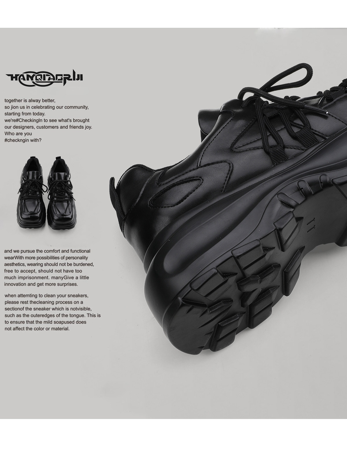 Hanqiao Diary [Abnormal Series] Оригинальный нишевый ремень с квадратным носком, мужская обувь для папы на толстой подошве и женская повседневная обувь на большой подошве
