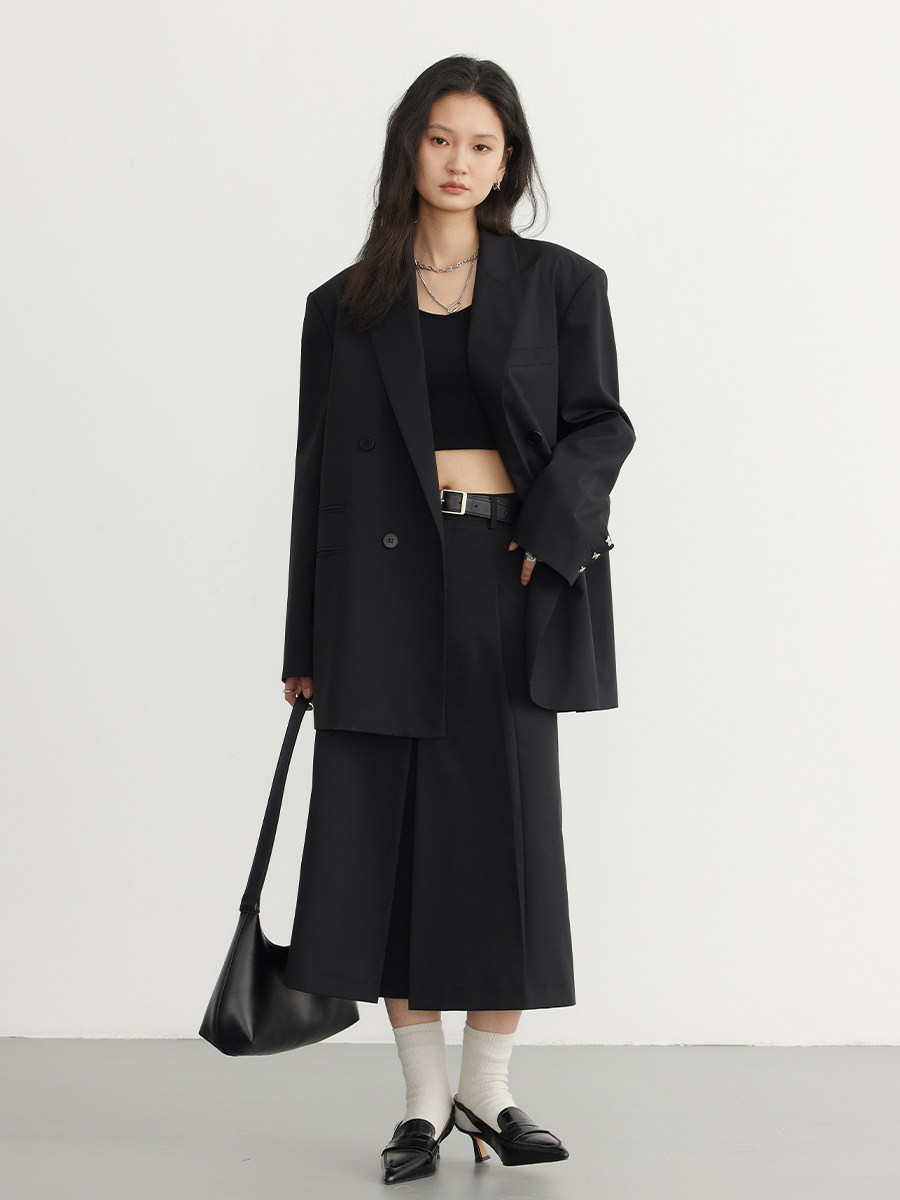 Широкая прямое версия с прямой+классическая 戗 戗 воротник, чистый и красивый Чтобы создать круглую и гладкую линию плеча, трехмерные не будут выглядеть слишком преувеличенными Манжеты тяжелый рабочий металлУкрашение бабочки, последнее штрих не скучно Задняя пленка наклоняется, оставляя ощущение расслабления, добавляя детали в украшение кнопок Двойной дух дизайнерский стиль колледжа, легкий в ношении и имеет краткое и атмосферное ощущение
