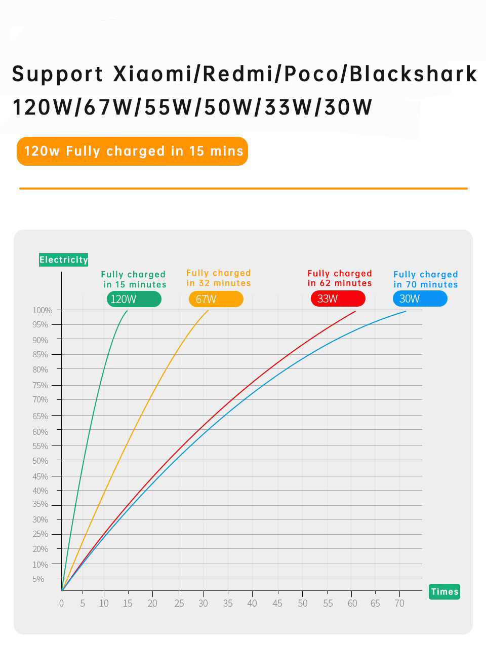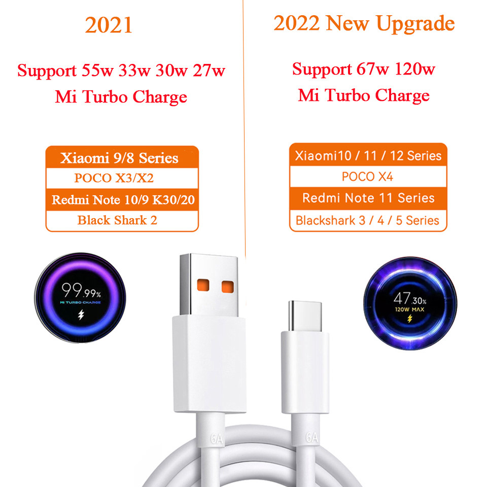 Xiaomi Original USB -тип кабеля 120W Зарядное устройство Turbo Fast Cha