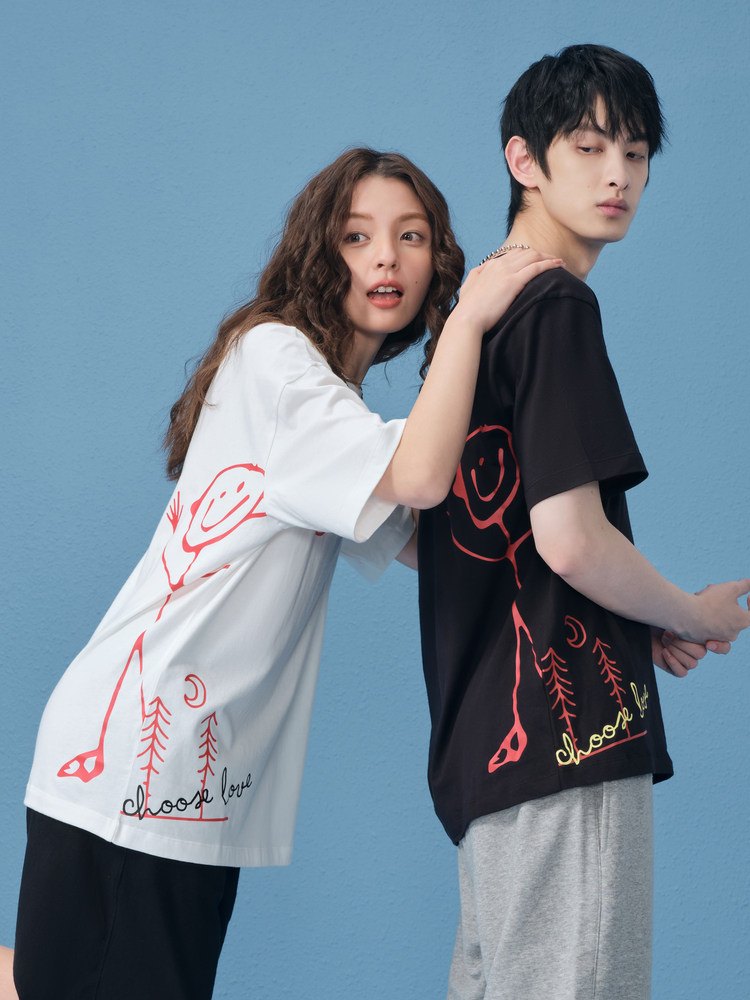Летняя мультяшная спортивная белая футболка для влюбленных, с вышивкой, короткий рукав