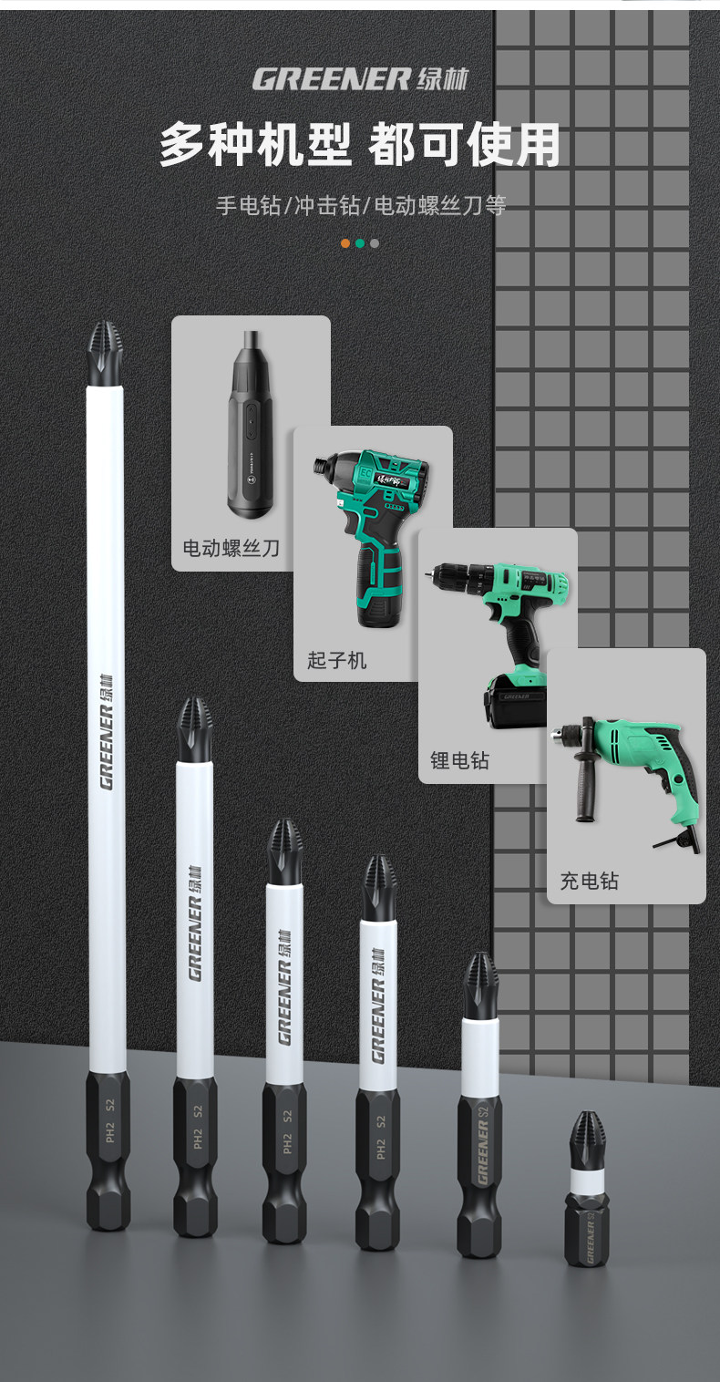 绿林 Нескользящая электрическая отвертка из нержавеющей стали, шлем, комплект, фонарь, шестиугольный сильный магнит, Вольфрамовая сталь