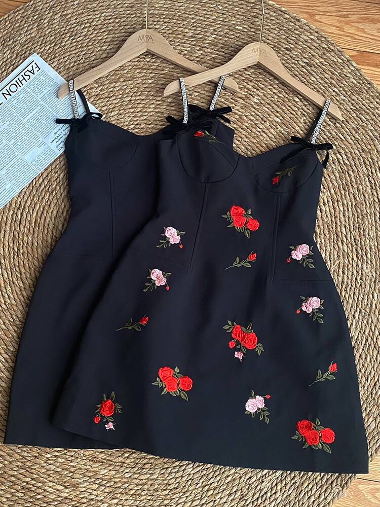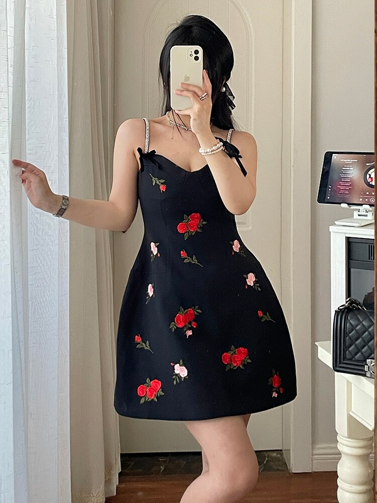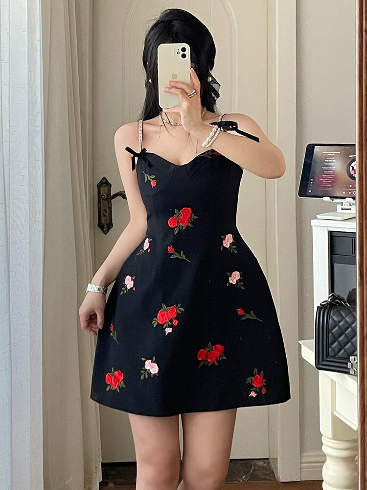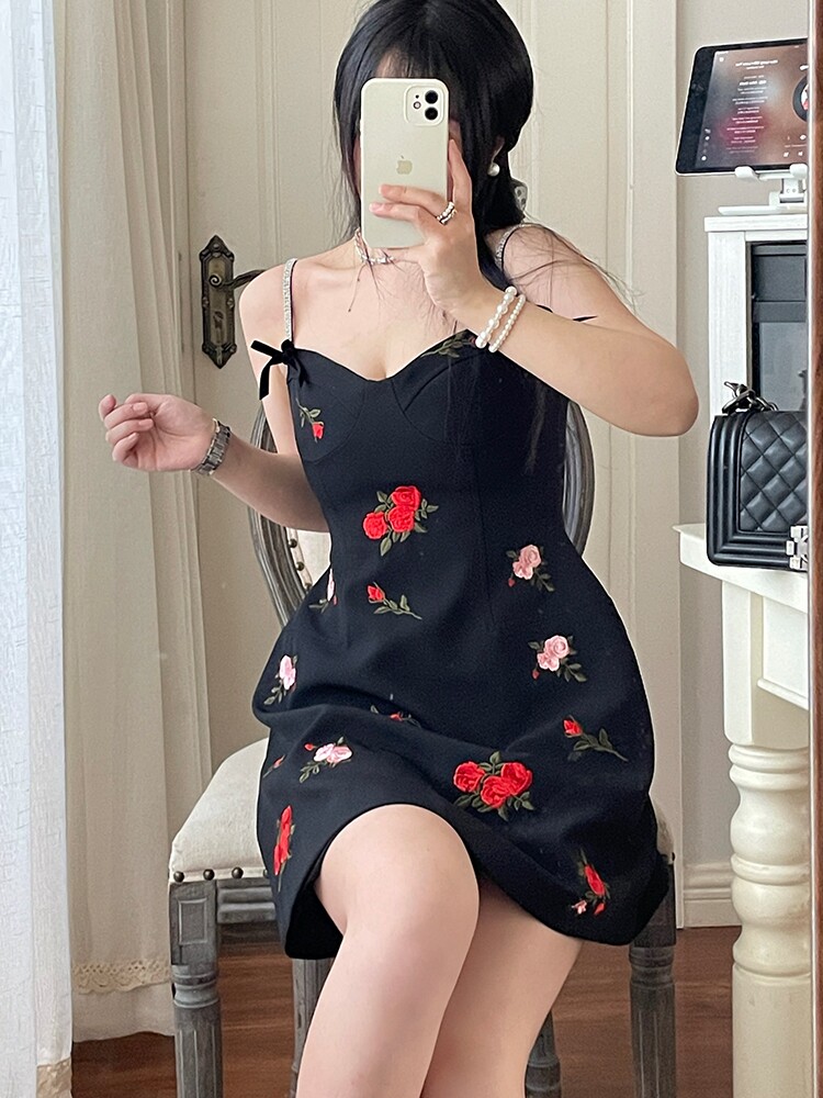 Платье, приталенный сексуальный дизайнерский корсет, мини-юбка, цветочный принт, с вышивкой, коллекция 2023, тренд сезона, подходит для подростков, эффект подтяжки
