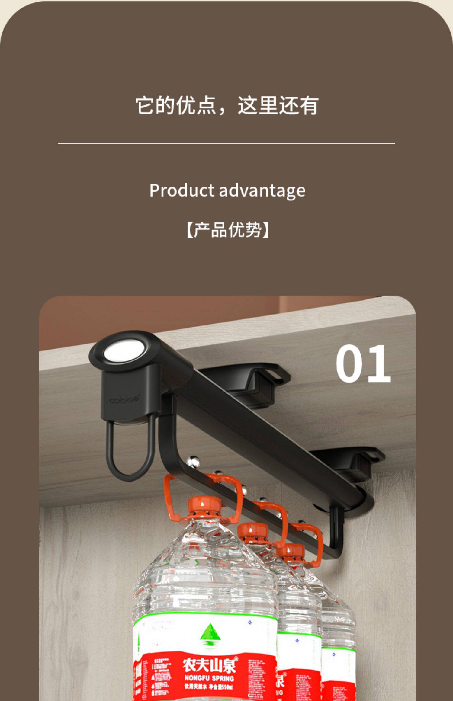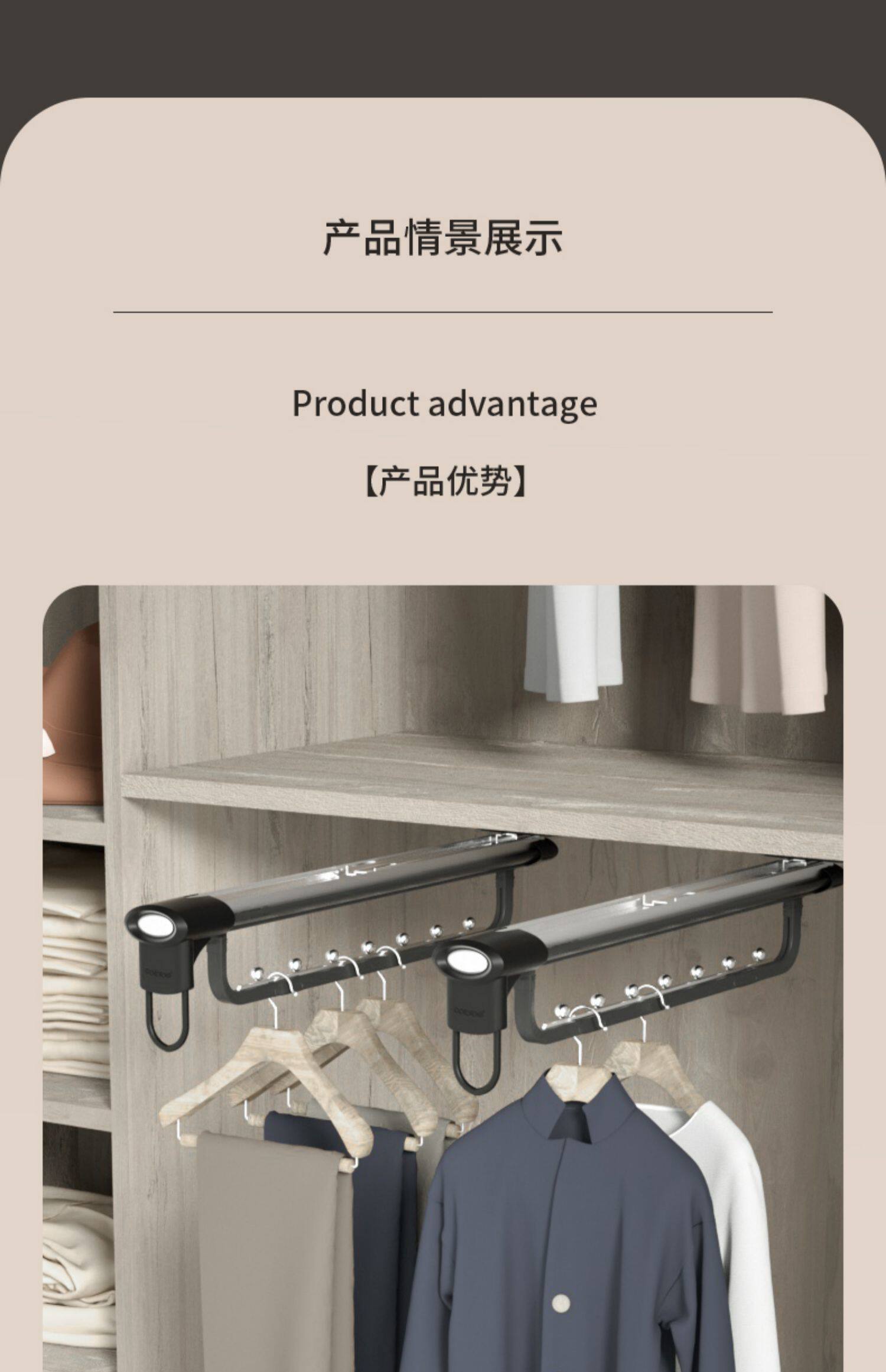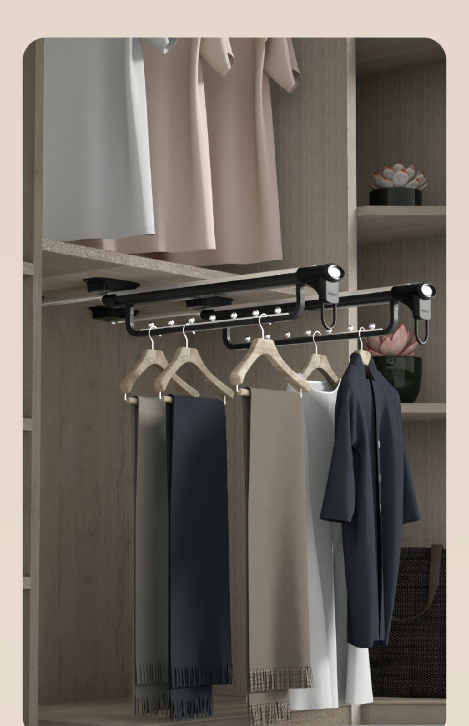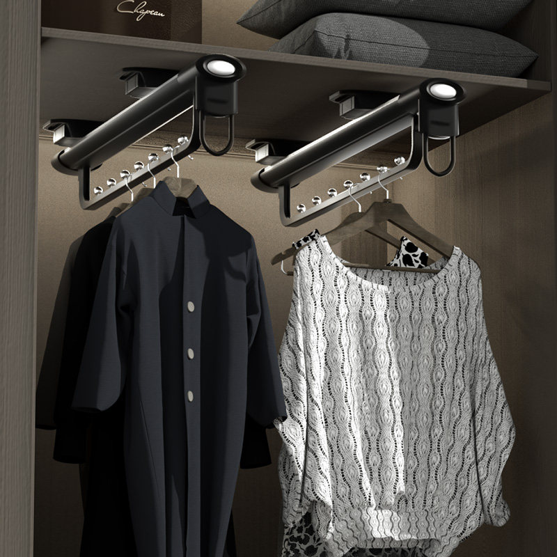 Штанга для одежды в шкафу Kabei, встроенный шкаф, верхняя вешалка для одежды, неглубокий шкаф, продольная телескопическая вешалка для одежды, тянущая и тянущая.
