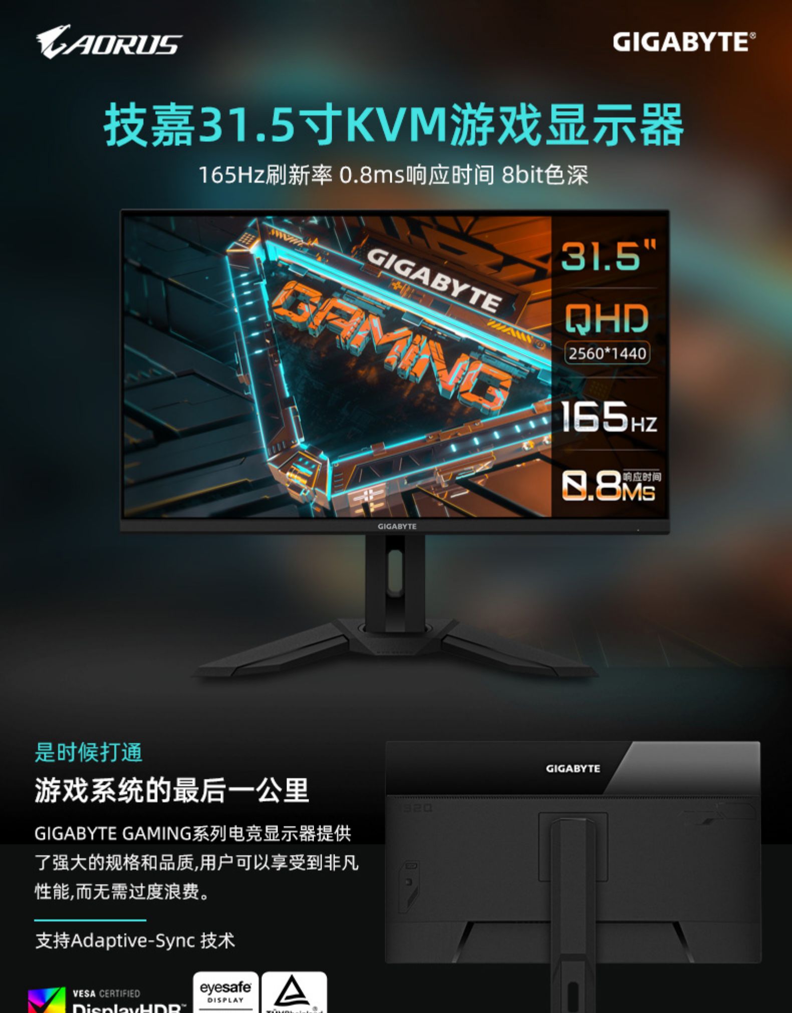 GIGA 32 -INCH 2K дисплей 165 Гц игры IPS Экран HDR LIFT Desktop Computer Endoor Audio 144