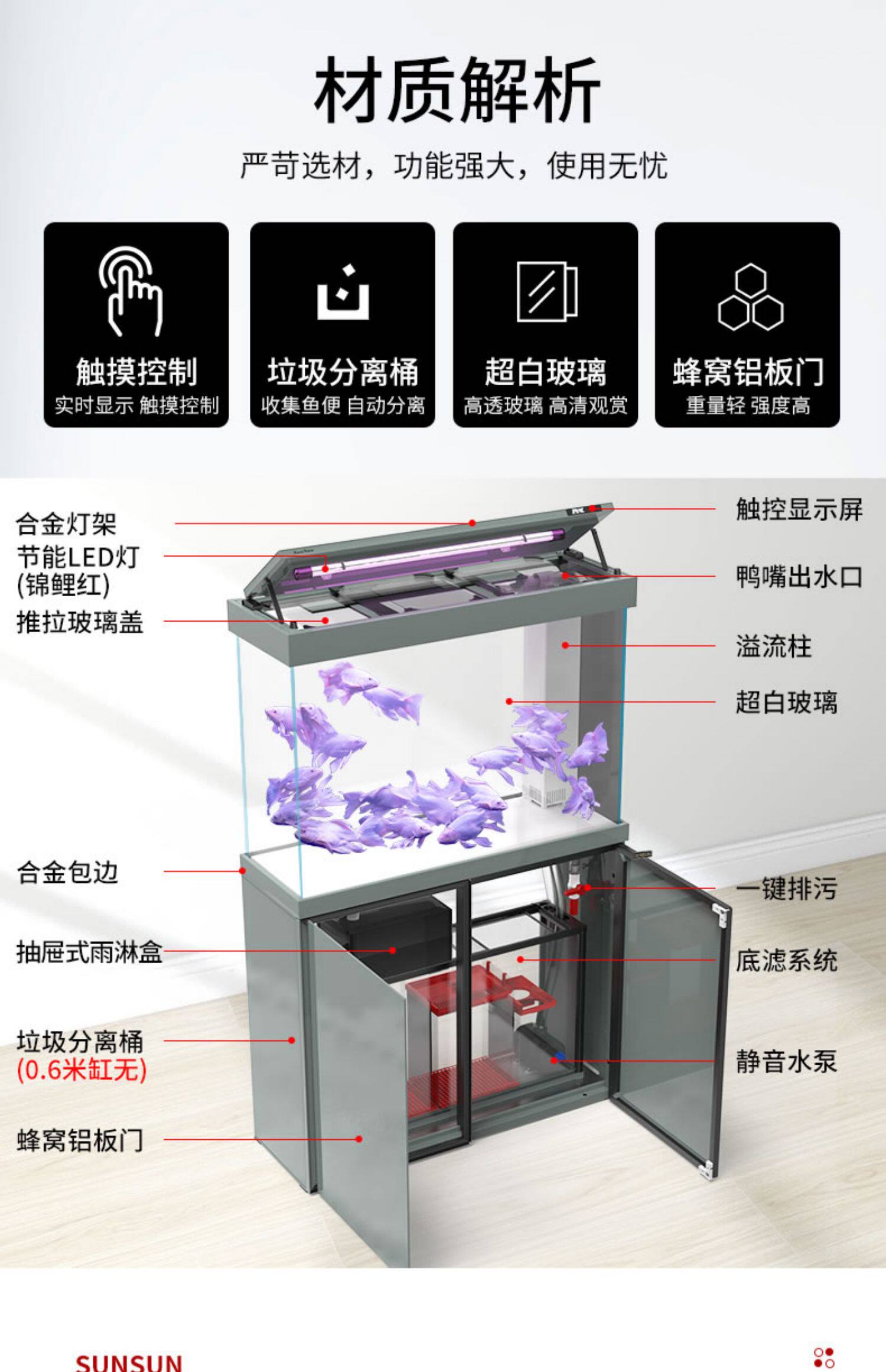 Sensen Jianse Aquarium Ecological Glass Fish Tank Homeving Living Room Большой нижний фильт