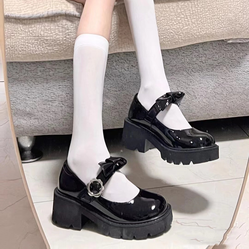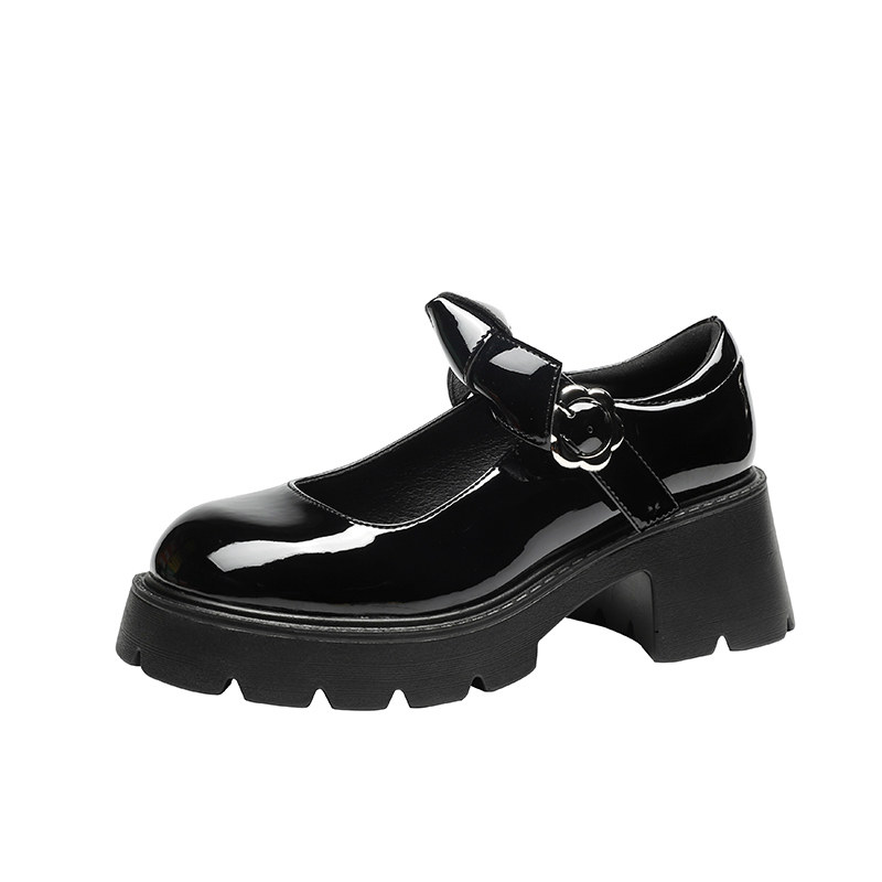 Черные кожаные женские туфли весной и осенью, лакированные кожаные туфли на толстой подошве в британском студенческом стиле, японские туфли jk, туфли Мэри Джейн на высоком каблуке