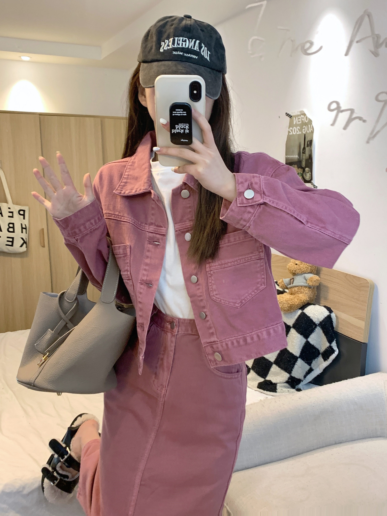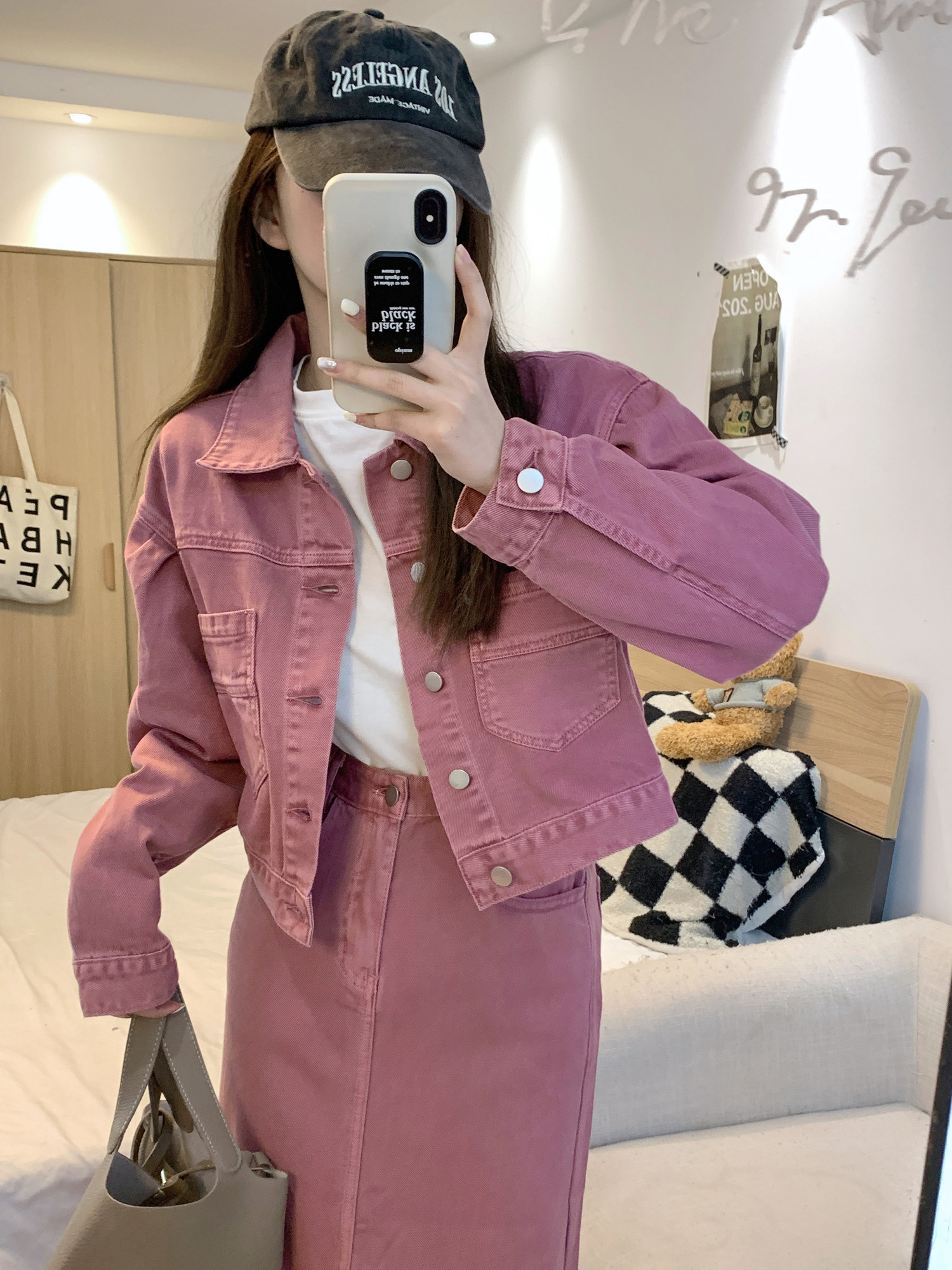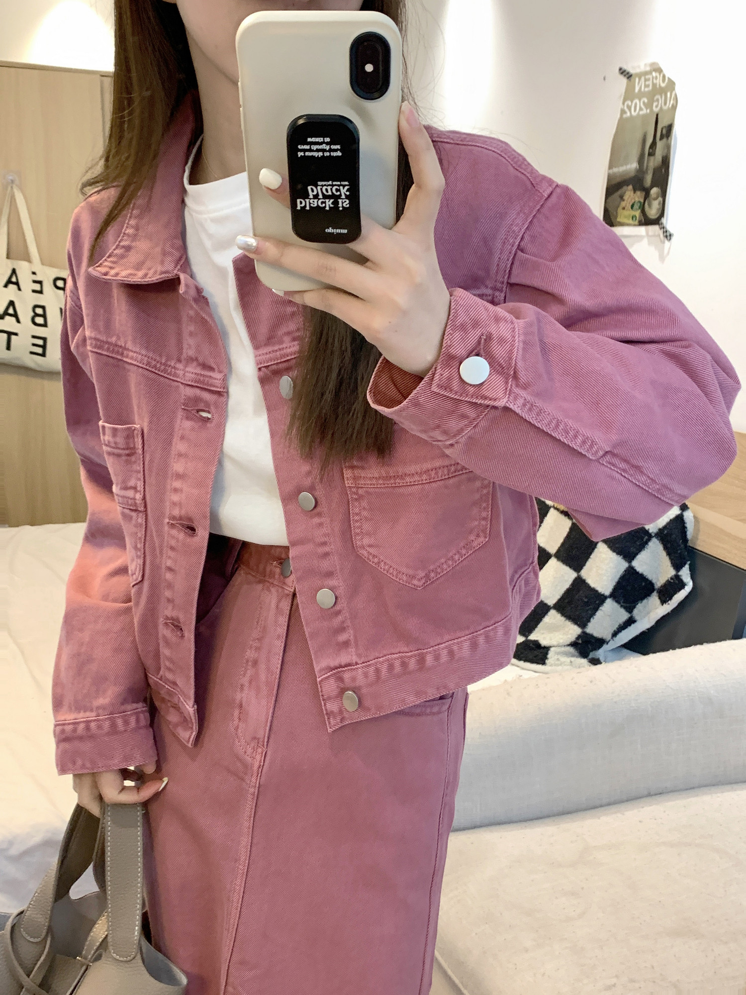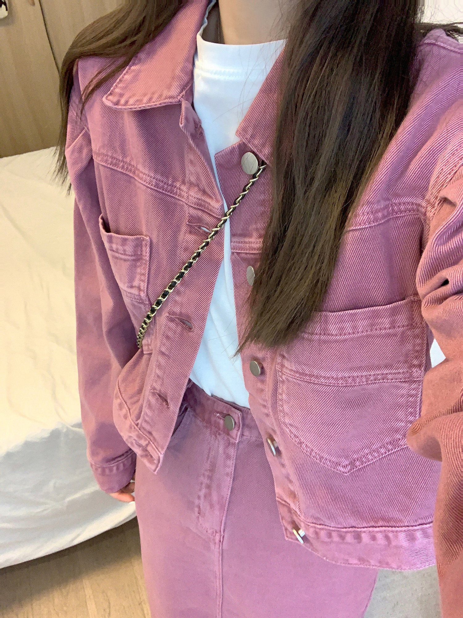 Джинсовый комплект, короткая куртка, юбка, свободный прямой крой